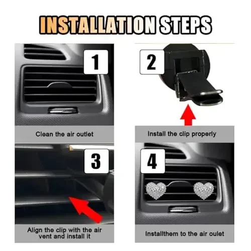 Paket içerisinde 2 adet kalp şeklinde kristal araç havalandırma klipsi bulunmaktadır. Kargo gereksinimleri nedeniyle, paket içerisinde koku tabletleri bulunmamaktadır. Dilediğiniz esansiyel yağı veya araç kokusunu kullanarak, klipslerinizi kişiselleştirebilirsiniz. Klipslerinizi takarken, havalandırma ızgaralarına zarar vermemeye özen gösteriniz. Ürünün temizliği için hafif nemli bir bez kullanabilirsiniz. Sert kimyasallar veya aşındırıcı temizleyiciler kullanmaktan kaçınınız. Ürününüzü uzun yıllar boyunca ilk günkü gibi kullanabilirsiniz.