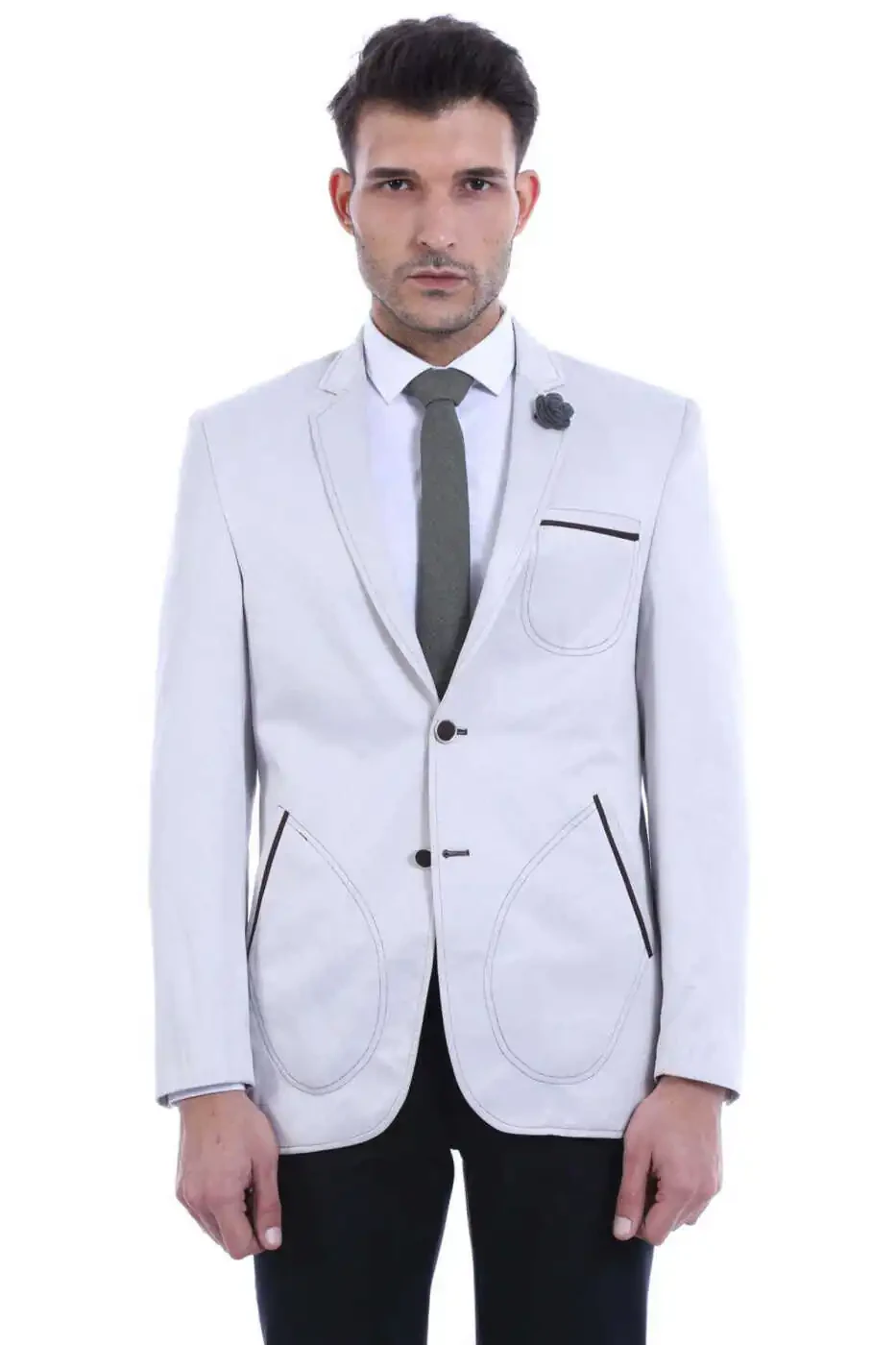 2 Button Patch Pocket Grey Men's Jacket - Wessi