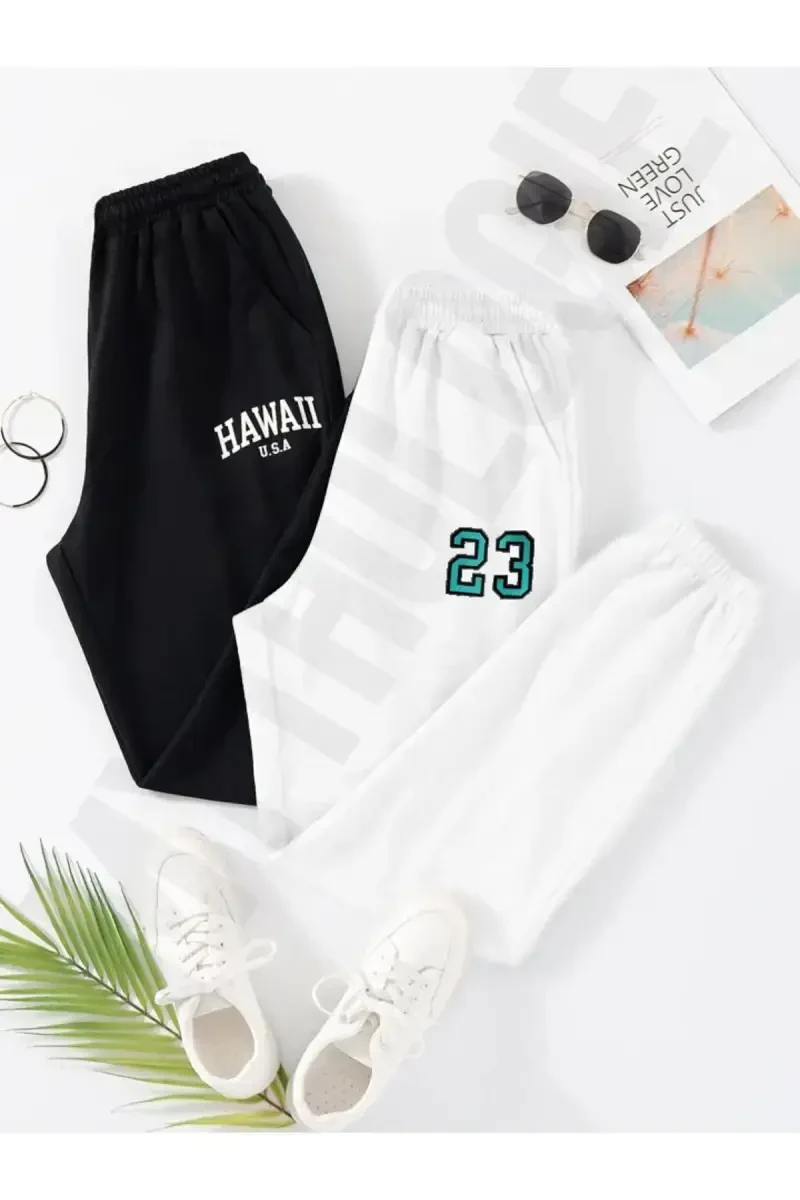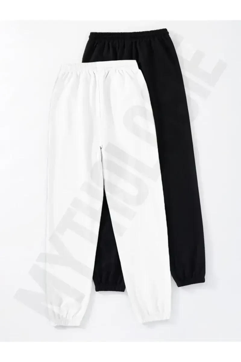 2-li Bosma Jogger Sport Shim - Qora Va Oq Rezina Manjet Yuqori Bel Yozgi - Qora Oq