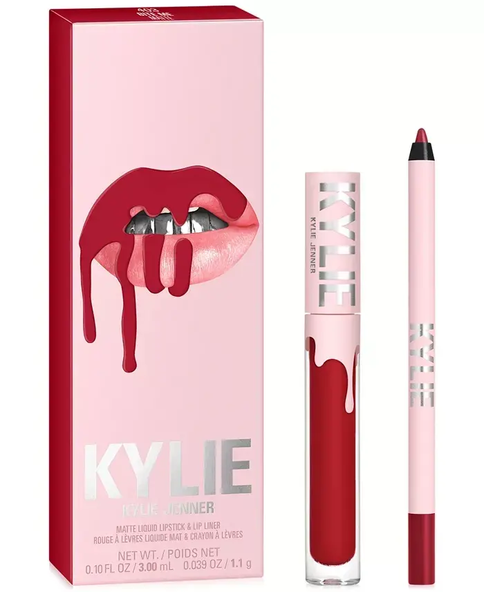 Create a long-lasting, matte look on your lips with the Kylie Cosmetics 2-Pc. Matte Lip Kit-403 Bite Me. This exclusive kit brings together two essential products that perfectly define and color your lips: Matte Liquid Lipstick and Lip Liner. The richly pigmented formulas deliver intense color to your lips, while the subtle vanilla scent makes your application experience even more enjoyable. Whether you want to create a natural look for everyday wear or a striking statement for the evening, this kit offers everything you need. The Matte Liquid Lipstick leaves a weightless, non-sticky feel on your lips, while the Lip Liner flawlessly frames your lips and helps the lipstick last longer. Suitable for all skin types, this set is an ideal choice for anyone seeking perfection in lip makeup. With Kylie Cosmetics quality, your lips will always be striking and attractive. The 403 Bite Me shade offers the perfect tone for a bold and assertive look. Create a professional touch on your lips with this kit and highlight your beauty. Thanks to its long-lasting, transfer-proof, and water-resistant formula, you can maintain your perfect look at all times. Make a difference with your lips with Kylie Cosmetics.
