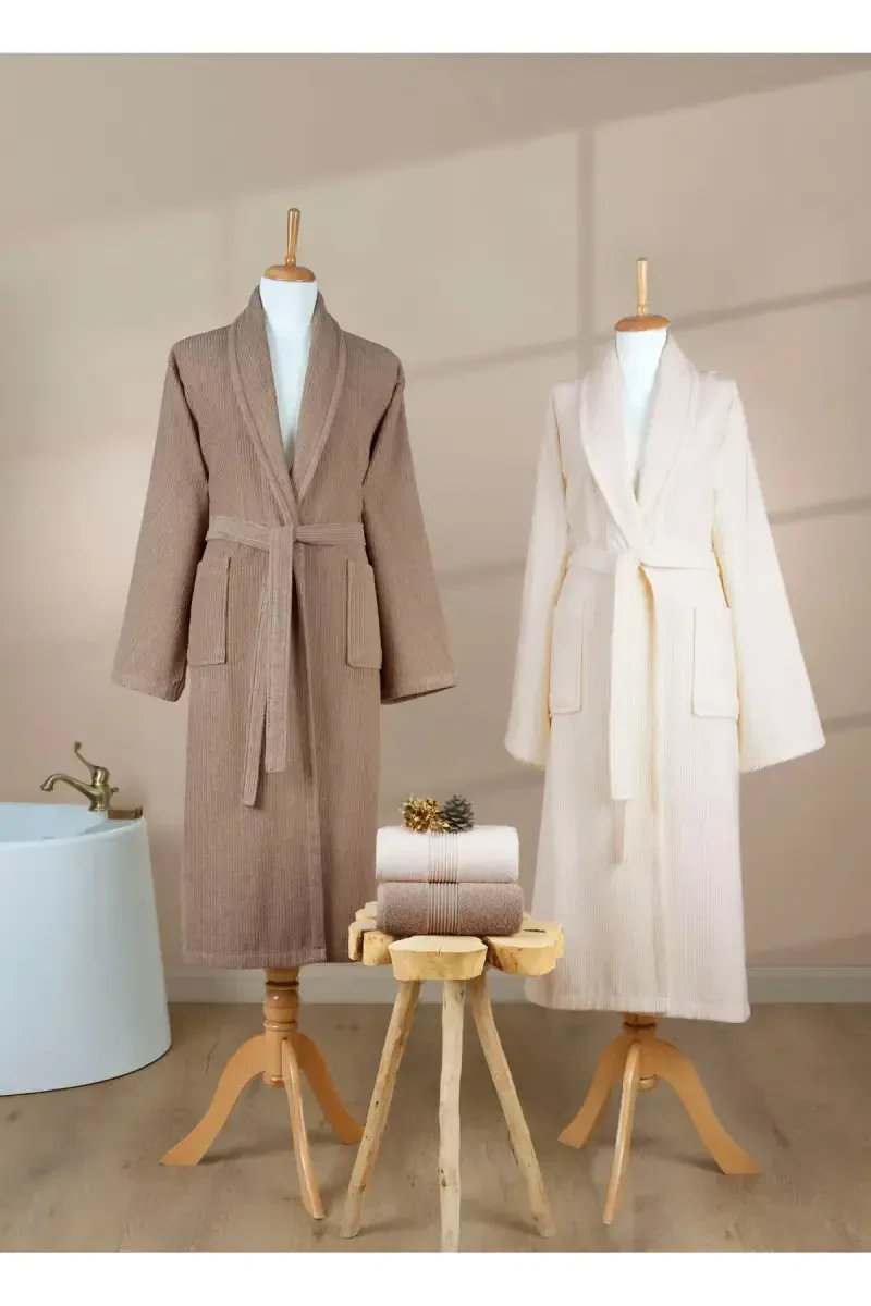 Introducing the 2-Piece Bathrobe Set, inviting you and your loved ones to a haven of softness and comfort! Made from 100% cotton, this luxurious bathrobe set offers a superior experience with its certified quality. The 4-piece set is designed with the comfort of each individual in mind. This set, one of the most enjoyable ways to reward yourself after a long and tiring day, will allow you to experience the pleasure of a spa at home. The bathrobes, with their soft texture, gently caress your skin, and their breathable structure maintains your comfort throughout the day. The highly absorbent cotton fabric ensures quick drying after showering. Stylish and functional with its elegant design, this set is the perfect choice for those seeking quality and comfort. Experience this unique experience with your family, loved ones, or yourself and create a comfort zone in your home that rivals a luxury hotel. A perfect gift option, the 2-Piece Bathrobe Set will be one of the best demonstrations of the value you place on your loved ones. This set, which will also attract you with its long-lasting use and easy care, add it to your cart now and pamper yourself and your loved ones. Experience the ultimate comfort and luxury that awaits you!