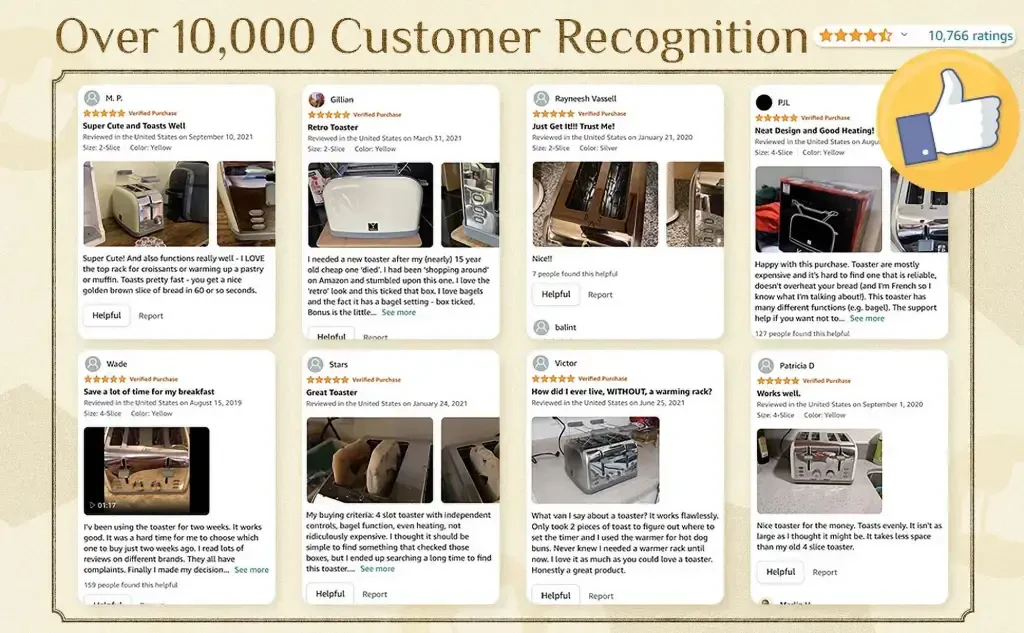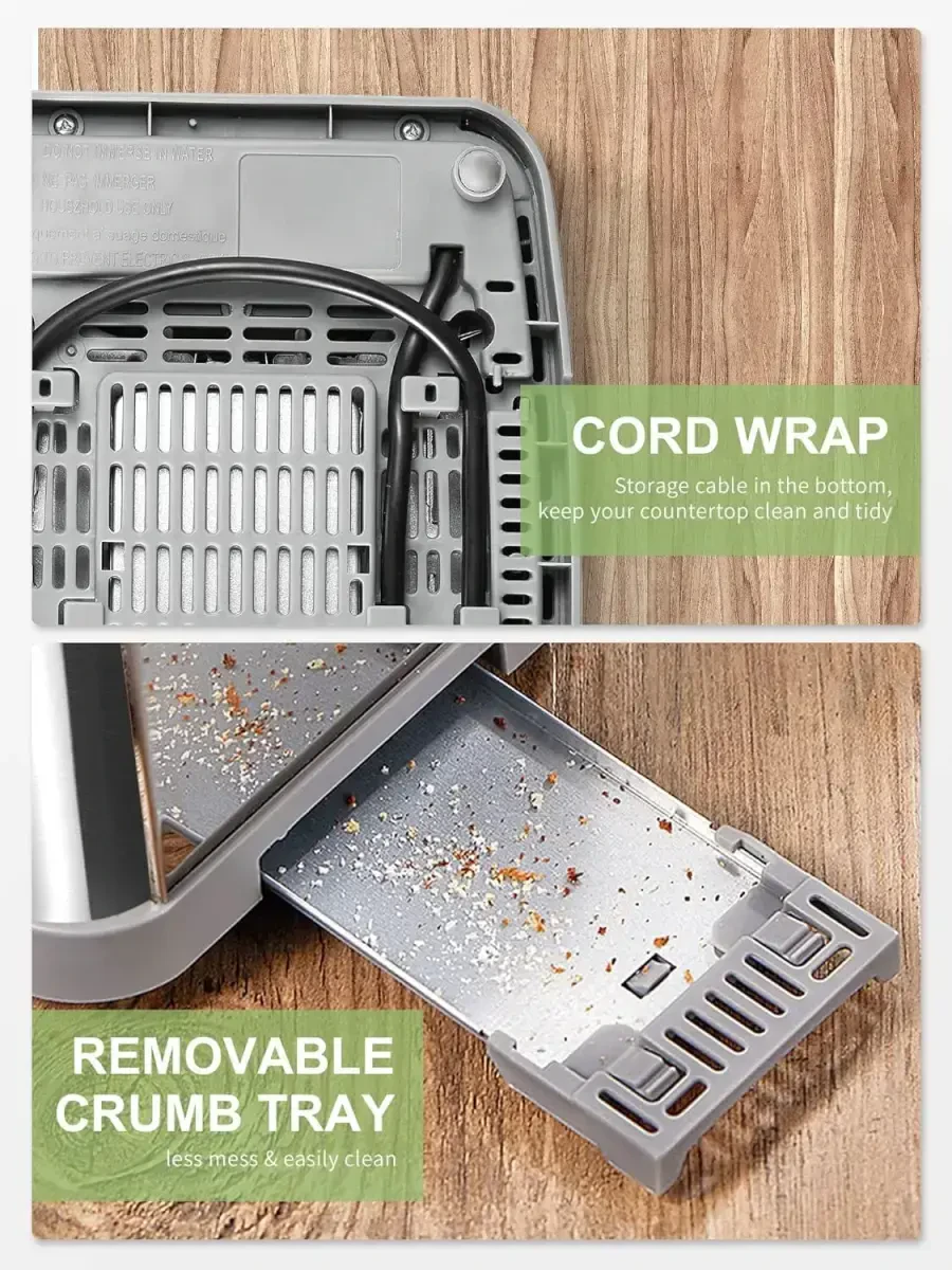 Thanks to the removable warming rack, you can keep your bread warm after toasting, and you can also heat pastries such as muffins or croissants. This feature allows you to further enrich your breakfast. Thanks to its compact design, it takes up minimal space on your kitchen counter and adds an aesthetic touch to your kitchen with its stylish appearance.