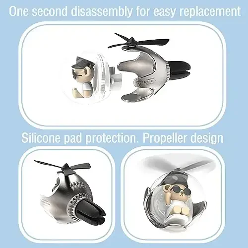 Освежите атмосферу в своем автомобиле с помощью 2 Pcs Pilot Car Air Freshener! Эти освежители воздуха с милыми дизайнами утки и кошки-пилота, сочетающие в себе элементы ретро-самолета, создают ностальгическую и романтическую атмосферу, предлагая при этом крутой и привлекательный образ. Силиконовый зажим благодаря своей крестообразной конструкции надежно и устойчиво крепится к вентиляционному отверстию. Он не только выполняет функцию распространения запаха, но и добавляет удовольствия от вращения пропеллера. Забавный дизайн вентилятора, вдохновленный винтажными винтовыми самолетами, приводит в движение пропеллер при включении вентиляции вашего автомобиля, и аромат равномерно распространяется по всем углам автомобиля. Этот инновационный и практичный дизайн обогатит ваши впечатления от вождения. Это не только освежитель воздуха, но и отличный подарок для офиса и дома. Классическая мультяшная форма авиатора и пропеллер самолета помогут вам отвлечься от рабочего стресса и повысить интерес. Этот освежитель воздуха размером примерно 62 x 60 x 53 мм легко адаптируется к любой среде. Эфирно-масляные таблетки (PE), полученные из натуральных растительных специй, используются для распространения аромата. Легко заменяется, безопасен в использовании и долговечен. Аромат обладает функцией устранения неприятных запахов и устранения вкусов. Выход воздуха дует ароматом в каждый уголок автомобиля, приводя в движение пропеллер. В основном подходит для новых автовладельцев и курильщиков. Морской парфюм имеет легкий аромат, который очищает воздух и соответствует вкусам публики. Подходит для всех возрастов. Автомобильные освежители воздуха, применяющие элементы самолета, превосходны с точки зрения изготовления и дизайна, что повышает удовольствие от вождения. Вы можете применить его в качестве подарка для своих друзей, люди, которые получат его, будут очень рады.