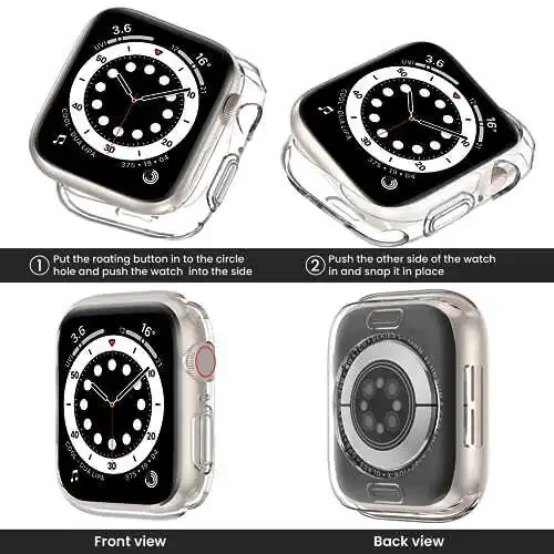- 2-упаковка: Два чехла разных цветов (прозрачный и черный) позволяют использовать ваши Apple Watch с разными вариантами стиля.