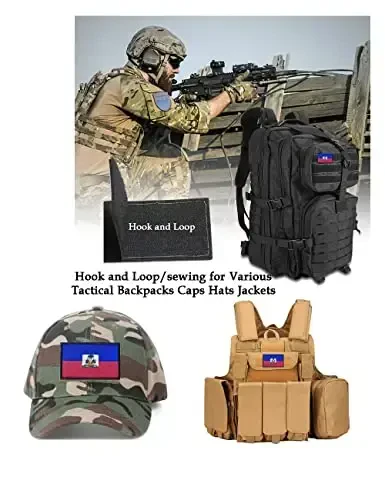 Патч флага Гаити - Тактическая военная моральная нашивка - 3x2 дюйма, вышитая аппликация на липучке (2 шт.)