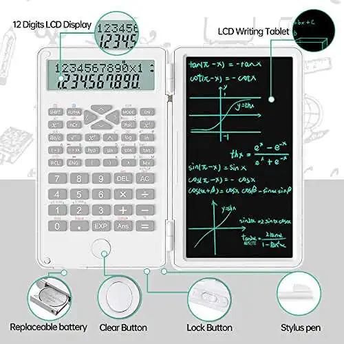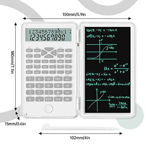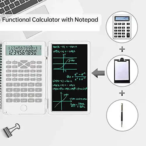 2-в-1 Научный калькулятор с планшетом для письма, Настольный карманный ЖК научный калькулятор Блокнот Профессиональный финансовый калькулятор для дома школы офиса бизнеса (Белый)