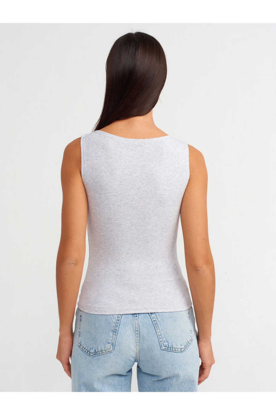 The 20847 Boat Neck Sleeveless Top combines style and comfort, ready to become an indispensable part of your wardrobe. This top, which complements every combination with its grey melange color, offers a stylish and comfortable look in your daily life.
