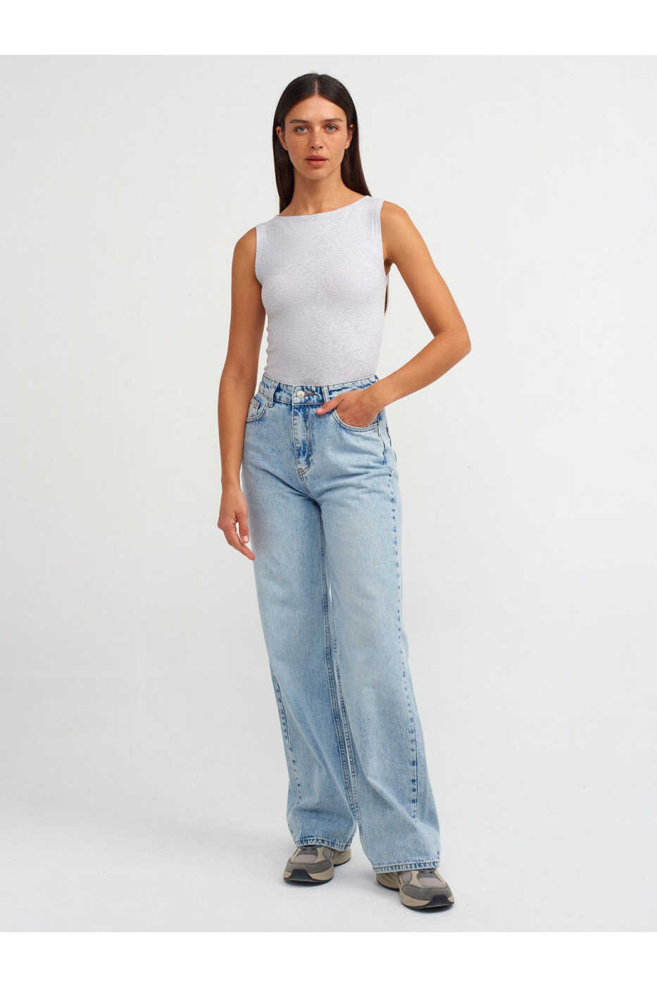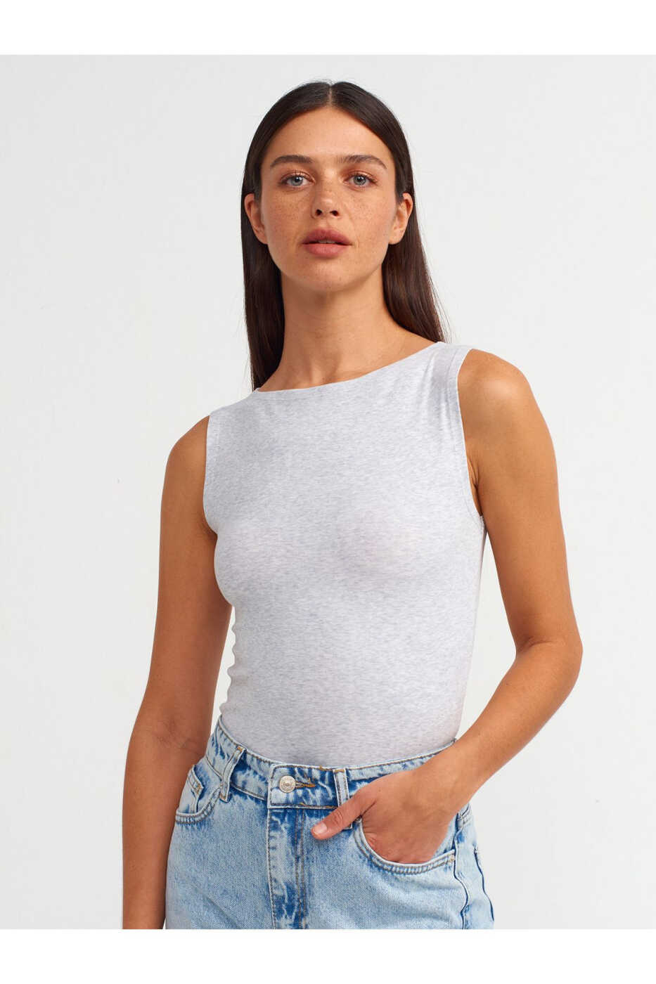 20847 Топ без рукавов с лодочкой - Серый меланж | Стильный и комфортный
