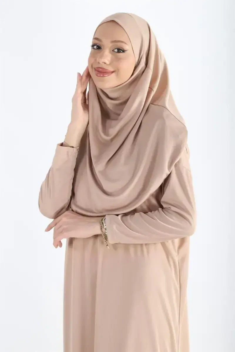 Bu maxsus namoz libos o‘zlarini kamtarona va shirin ko‘rinishni hohlagan musulmon ayollar uchun a‘lo tanlovdir. Uning bir qismli dizayni, qulay kiyib olish xususiyati va sirg‘alib bitmaydigan ro‘mol namoz vaqtida qulaylikni ta’minlaydi.