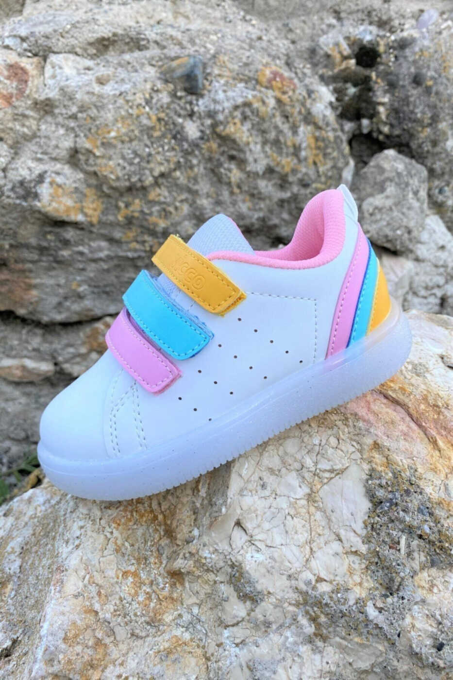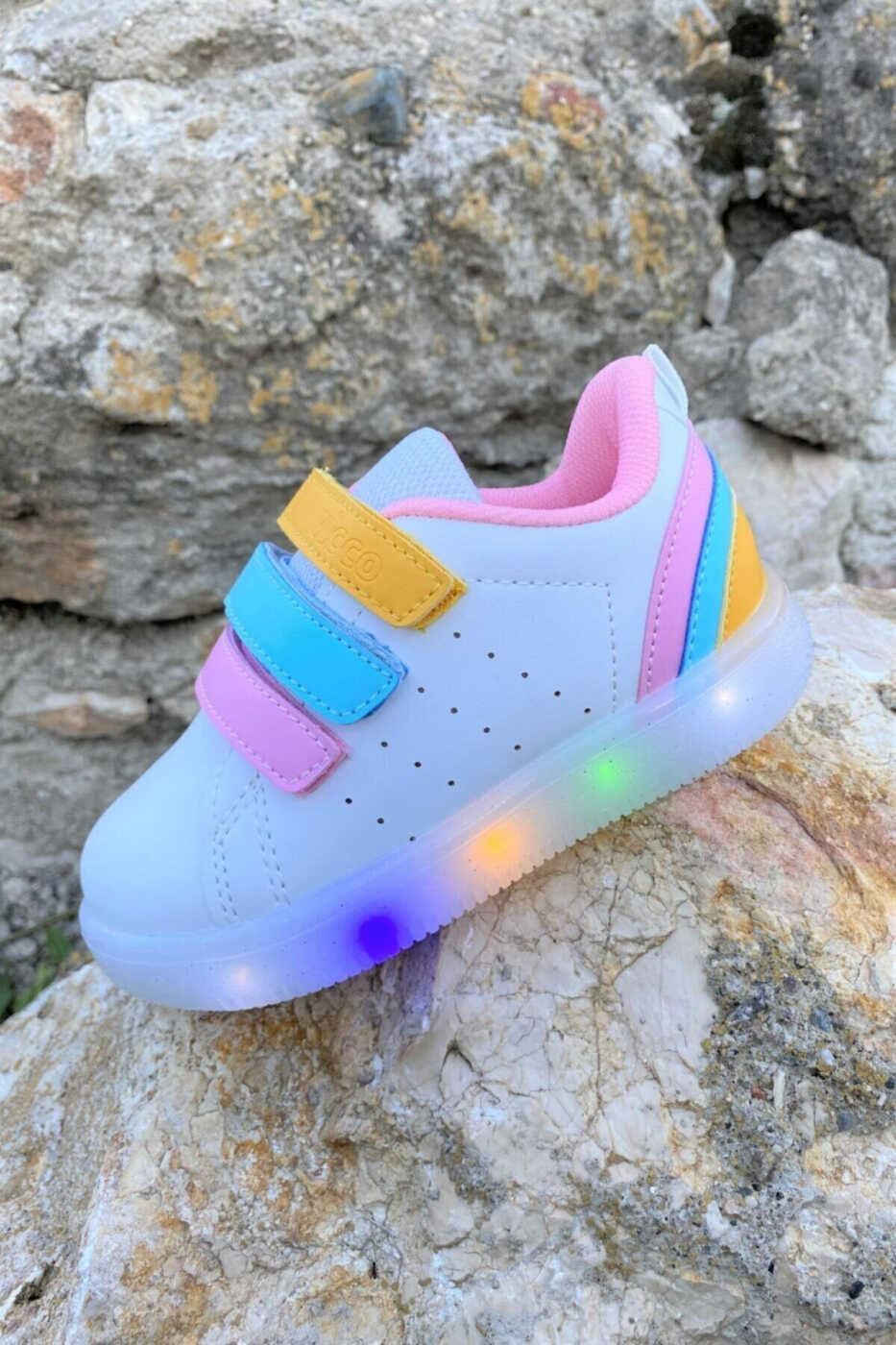 Сверкающие белые огоньки сделают вечерние прогулки вашего малыша еще более веселыми. Кроссовки также безопасны и прочны. Нескользящая подошва обеспечивает безопасные шаги вашего малыша. Практичная застежка на липучке позволяет легко надевать и снимать обувь малышу.