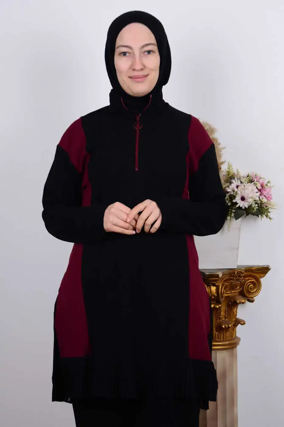 Блузка женская бордового цвета с воланами и полузастежкой-молнией Armine 23KT448: Стиль и комфорт