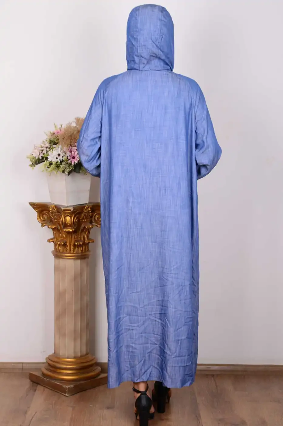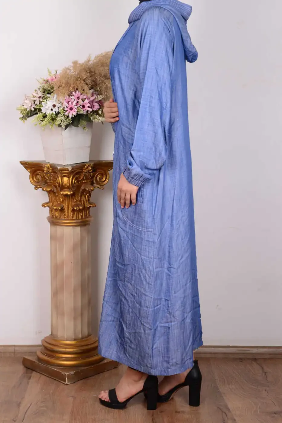 **24yt564 Indigo Women's Hooded Deep Pocket Detail Full Zip Elastic Sleeve Pullover**
