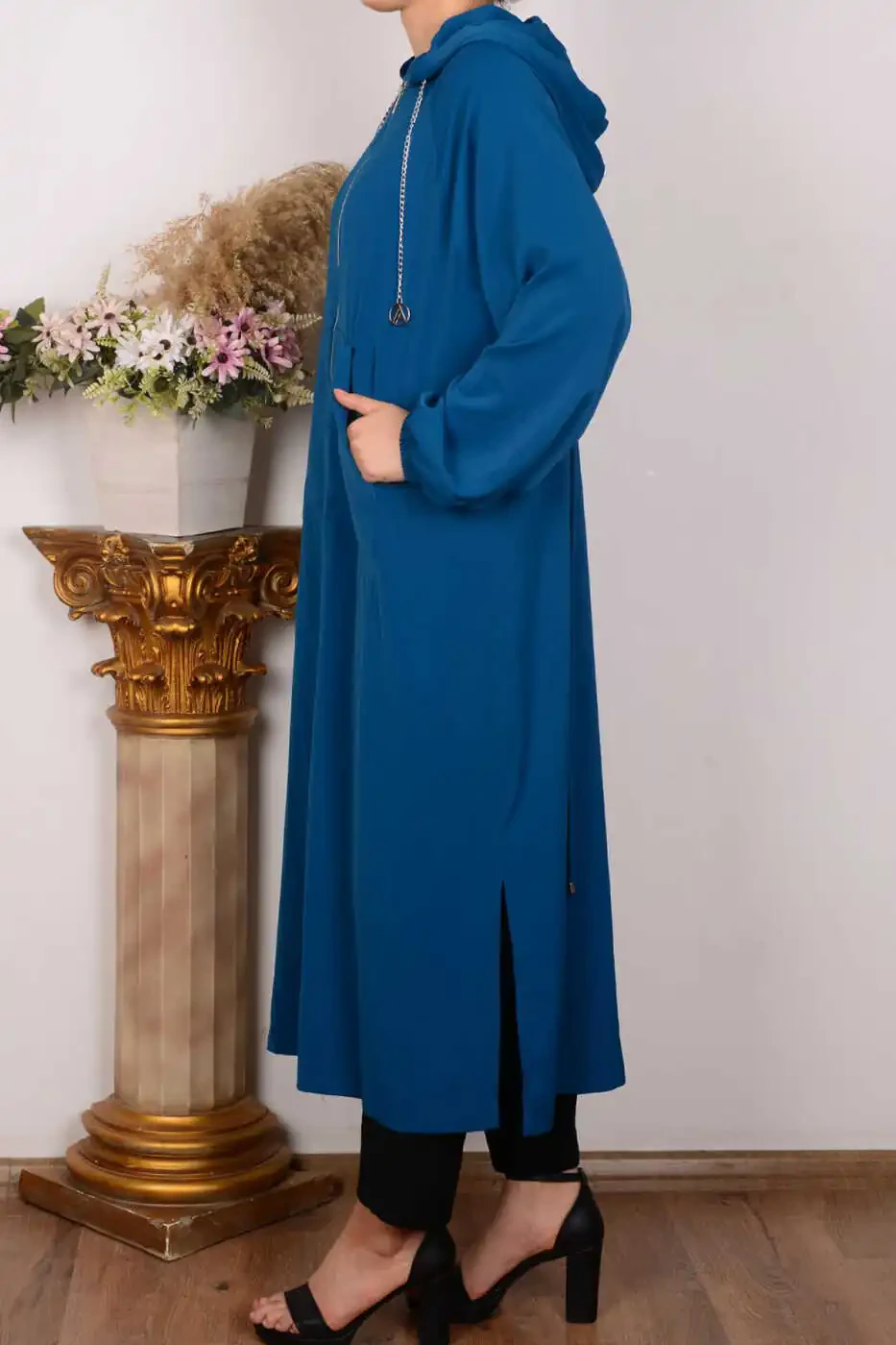 24YT762, Ayollarga mo'ljallangan kapşonlu sviter, Cho'ntagiga sig'adigan, Neft rangli, Zinjirida tafsilotlari, Kanguru cho'ntakli