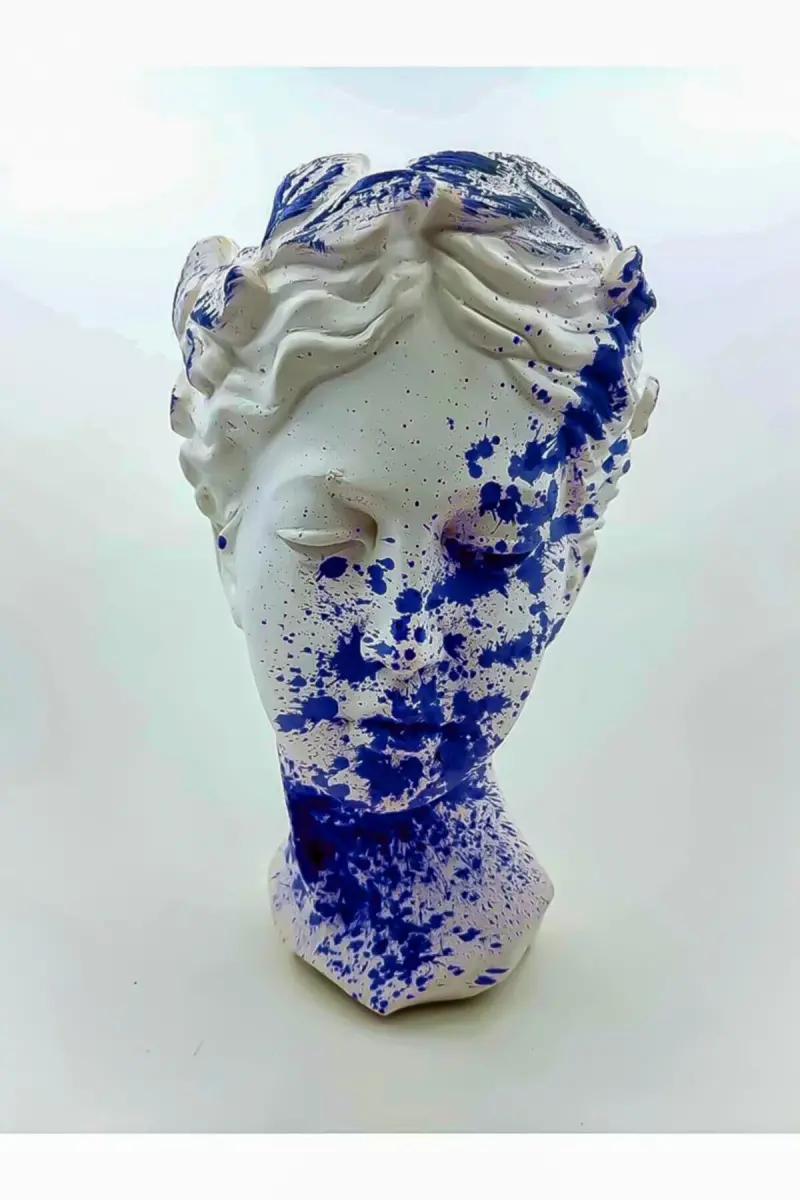 25 Cm Büyük Helen Heykel Antik Büst Mavi Konsept Vazo Saksı Mavi-beyaz-Mavi
