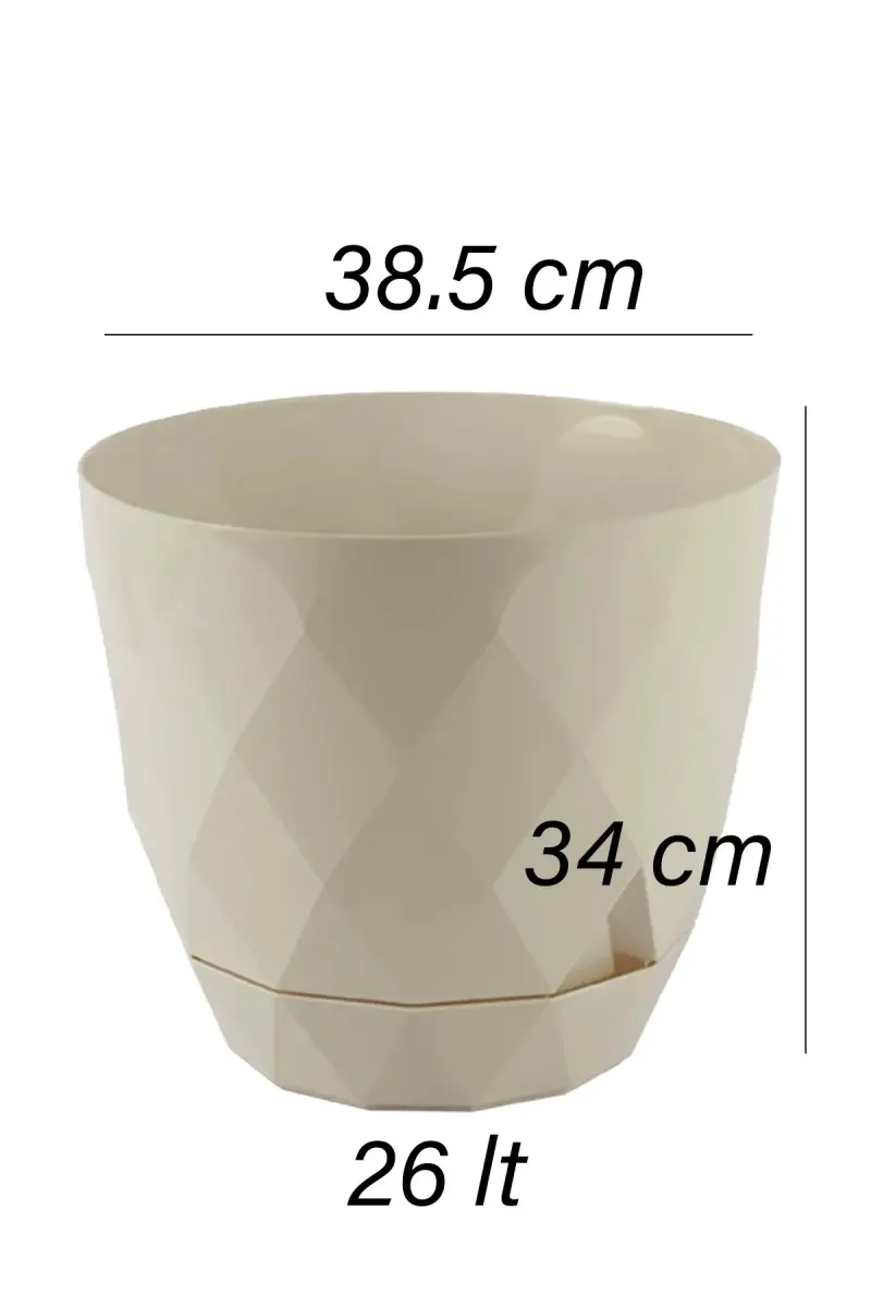 Bu ürün Temmuz home tarafından gönderilecektir.Kampanya fiyatından satılmak üzere 100 adetten fazla stok sunulmuştur.İncelemiş olduğunuz ürünün satış fiyatını satıcı belirlemektedir.Bir ürün, birden fazla satıcı tarafından satılabilir. Birden fazla satıcı tarafından satışa sunulan ürünlerin satıcıları ürün için belirledikleri fiyata, satıcı puanlarına, teslimat statülerine, ürünlerdeki promosyonlara, kargonun bedava olup olmamasına ve ürünlerin hızlı teslimat ile teslim edilip edilememesine, ürünlerin stok ve kategorileri bilgilerine göre sıralanmaktadır.Bu üründen en fazla 10 adet sipariş verilebilir. 10 adedin üzerindeki siparişleri Trendyol iptal etme hakkını saklı tutar. Belirlenen bu limit kurumsal siparişlerde geçerli olmayıp, kurumsal siparişler için farklı limitler belirlenebilmektedir.15 gün içinde ücretsiz iade. Detaylı bilgi için [page="return_conditions"]tıklayın .TEMMUZ HOME 26 Litre Prizma Desenli Dekoratif Büyük Boy Tabaklı Plastik Saksı Yakamoz No7 38,5cm 34cmLÜTFEN ÖLÇÜLERE DİKKAT EDİNİZ!!!Ağız Çapı: 38,5 cm. | Yükseklik: 34 cm. | Kapasite: 26 LitreMateryal: Yüksek Kalite PlastikGeçmeli sistem tabaklı bir saksı modelidir.Prizma desenli parlak bir görünüme sahiptir.Saksı dibi deliklidirDekoratif ve çok şık bir görünüme sahiptir.Sağlam bir yapıya sahiptir.Sağlığa zararlı hiçbir madde içermez.| Yerli üretimdir.
