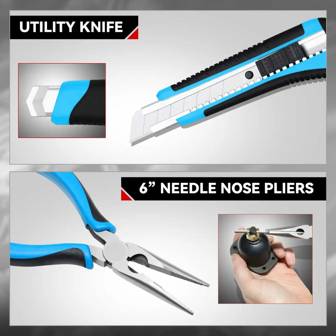 27 qismli akkumulyatorli vint va uy ta'mirlash to'plami bilan tanishing! Ushbu keng qamrovli to'plam sizga uyingizda, kvartirangizda yoki ofisingizdagi asosiy loyihalar uchun kerak bo'lgan hamma narsani birlashtiradi. 12V quvvatga ega akkumulyatorli vint, ham standart dumaloq shaftli burg'ulash uchlarini, ham olti burchakli shaftli vintlarni ishlatish qobiliyati tufayli ko'p qirrali foydalanishni ta'minlaydi. To'plamga kiritilgan besh xil diametrli yog'och burg'ulash uchi va o'nlab uzun olti burchakli vintlar sizning turli ehtiyojlaringizni qondirish uchun mo'ljallangan. Olti burchakli vintlar ham akkumulyatorli vintda, ham qo'lda vintlardek apparatda ishlatilishi mumkin, bu sizga moslashuvchanlikni beradi.To'plamning tarkibi faqat vintlash va burg'ulash bilan cheklanmaydi. Ikki dona sobit tornavida (bitta tekis va bitta yulduz), to'rtta nozik tornavida (ikkita tekis va ikkita yulduz) bilan kichik ta'mirlashlaringizni osongina amalga oshirishingiz mumkin. Bundan tashqari, to'plamda lenta o'lchagich, model pichog'i, 6 dyuymli kargaburun pensi va 12oz bolg'a kabi asosiy qo'l asboblari ham mavjud.Ushbu to'plam, ayniqsa, yangi boshlanuvchilar va uyda kichik ta'mirlash ishlarini o'zlari qilishni istaganlar uchun idealdir. Kompakt dizayni tufayli uni osongina saqlash va tashish mumkin. Zaryadlanadigan akkumulyator tufayli siz simlar chalkashligidan xalos bo'lasiz, bu sizga erkin ish joyini taqdim etadi. Xoh rasm osing, xoh mebelni yig'ing, xoh oddiy elektr ishini hal qiling, bu to'plam har doim sizning yoningizda bo'ladigan ishonchli yordamchidir. 27 qismli akkumulyatorli vint va uy ta'mirlash to'plami bilan uy ishlaringizni osonlashtiring va ta'mirlash loyihalaridan zavqlaning!