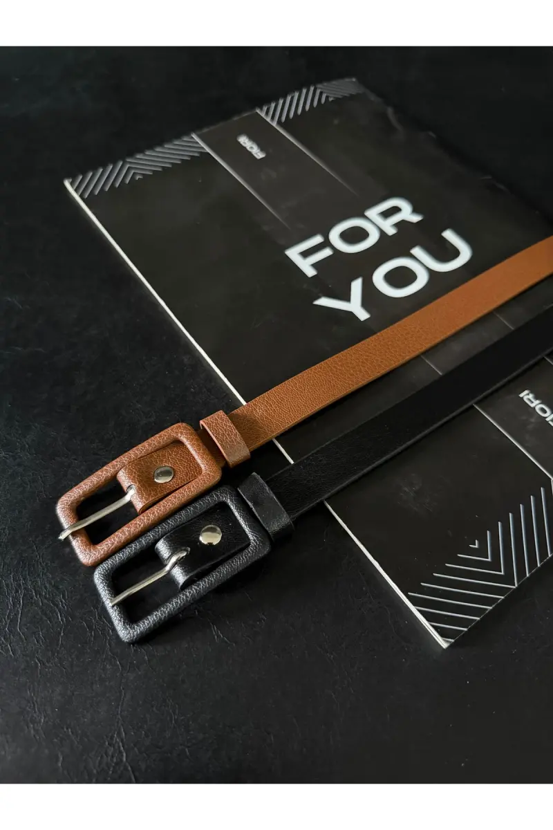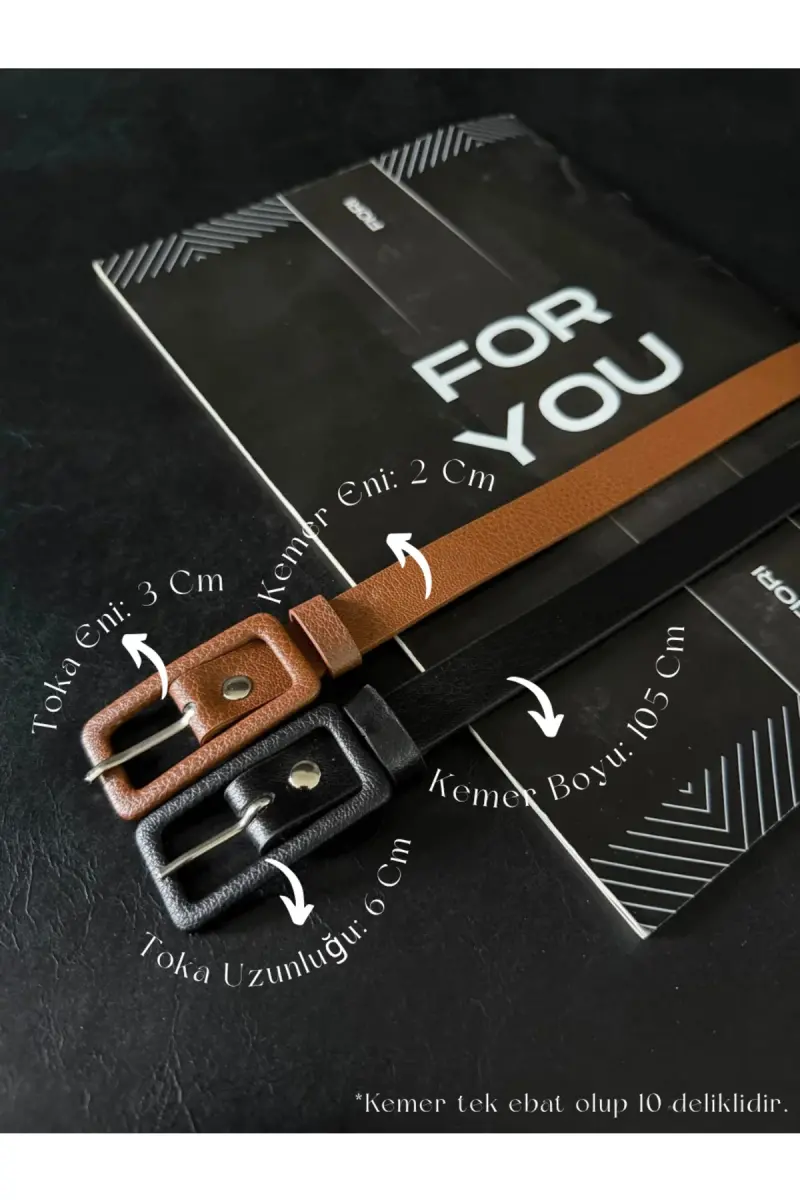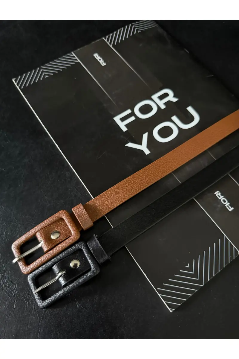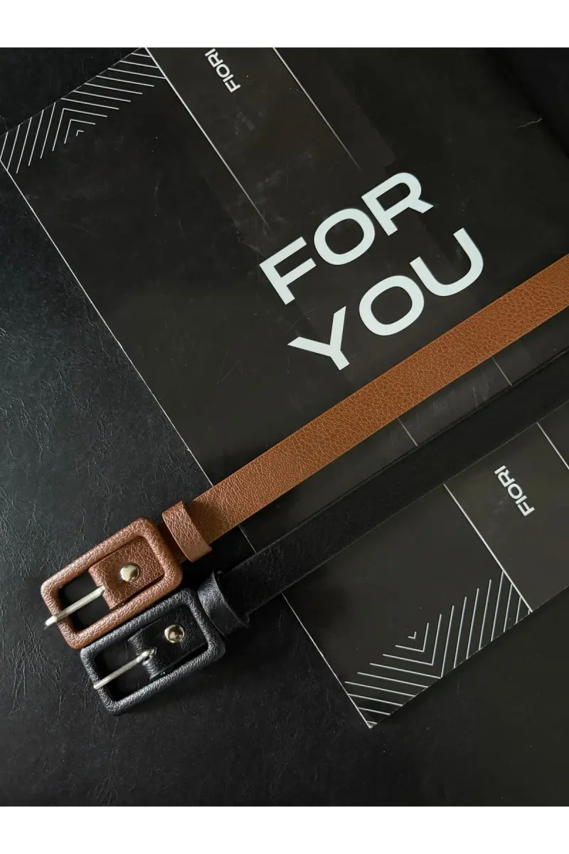 2’li Dikdörtgen Kaplama Tokalı Ince Kadın Pantolon Kemeri, Ceket Kemeri, Gömlek Kemeri-Siyah