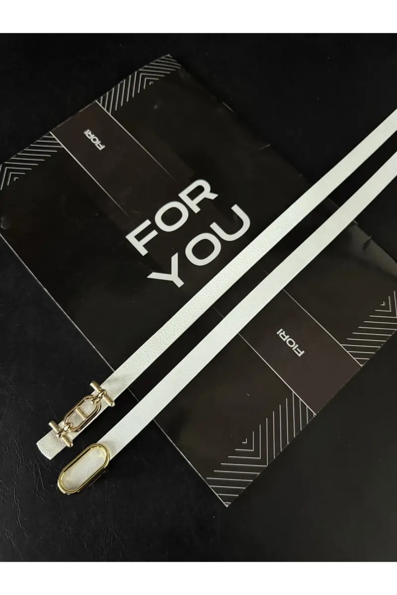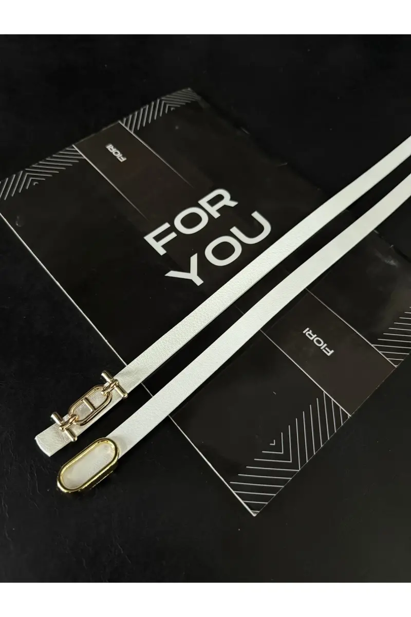 2'li Gold Tokalı İnce Kemer, Pantolon Kemeri, Gömlek Kemeri, Ceket Kemeri-Beyaz2li