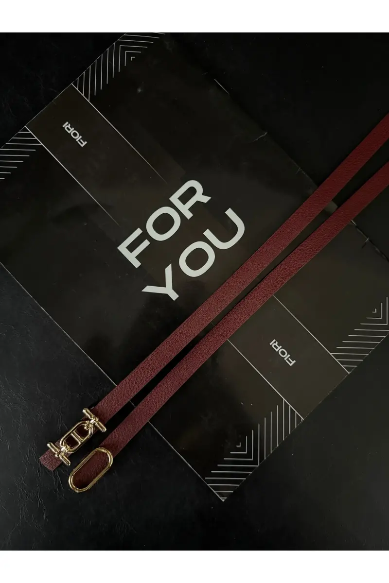 2'li Gold Tokalı İnce Kemer, Pantolon Kemeri, Gömlek Kemeri, Ceket Kemeri-Bordo2li