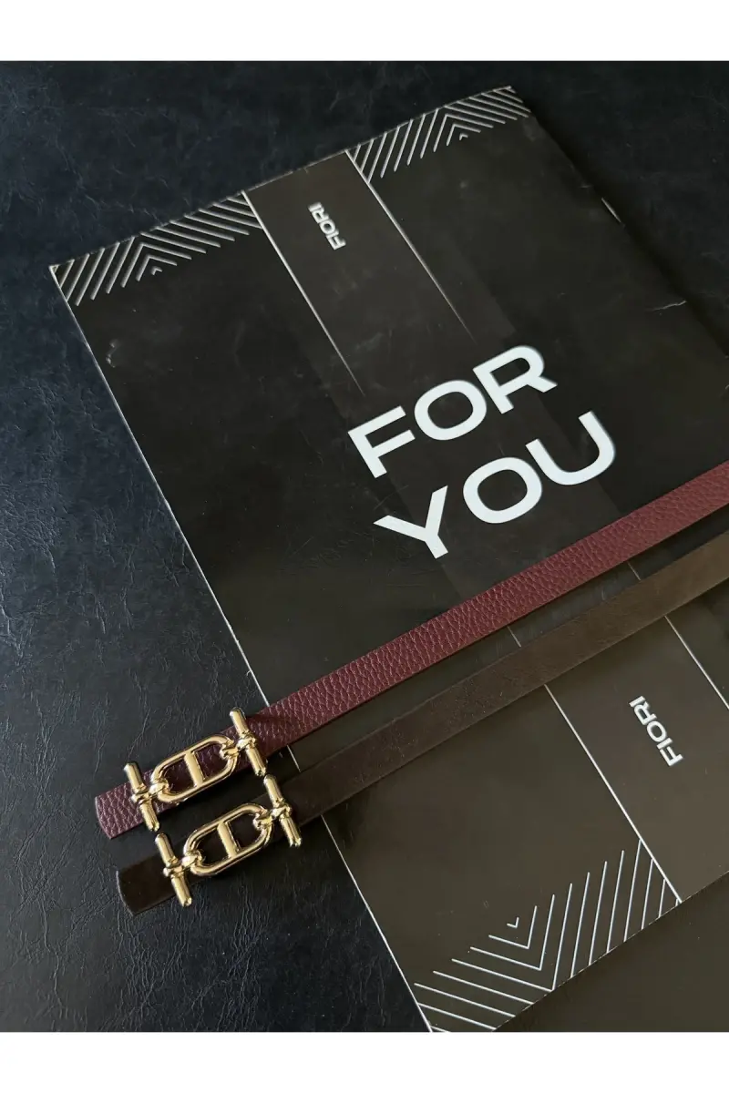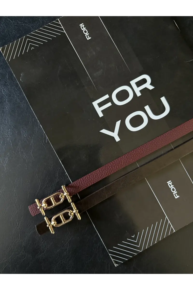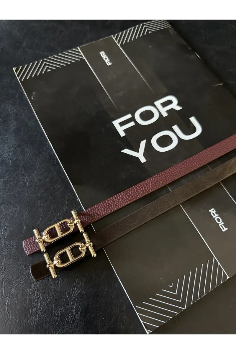 2'li Gold Tokalı İnce Kemer, Pantolon Kemeri, Gömlek Kemeri, Ceket Kemeri-Kahve