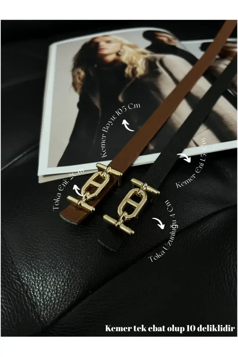 Suni Deri; Gold Tokalı; İnce Kemer; Pantolon, Gömlek, Ceket vb. kombinlerinize uygundur; Uzunluk: 105 cm; Genişlik: 1.3 cm