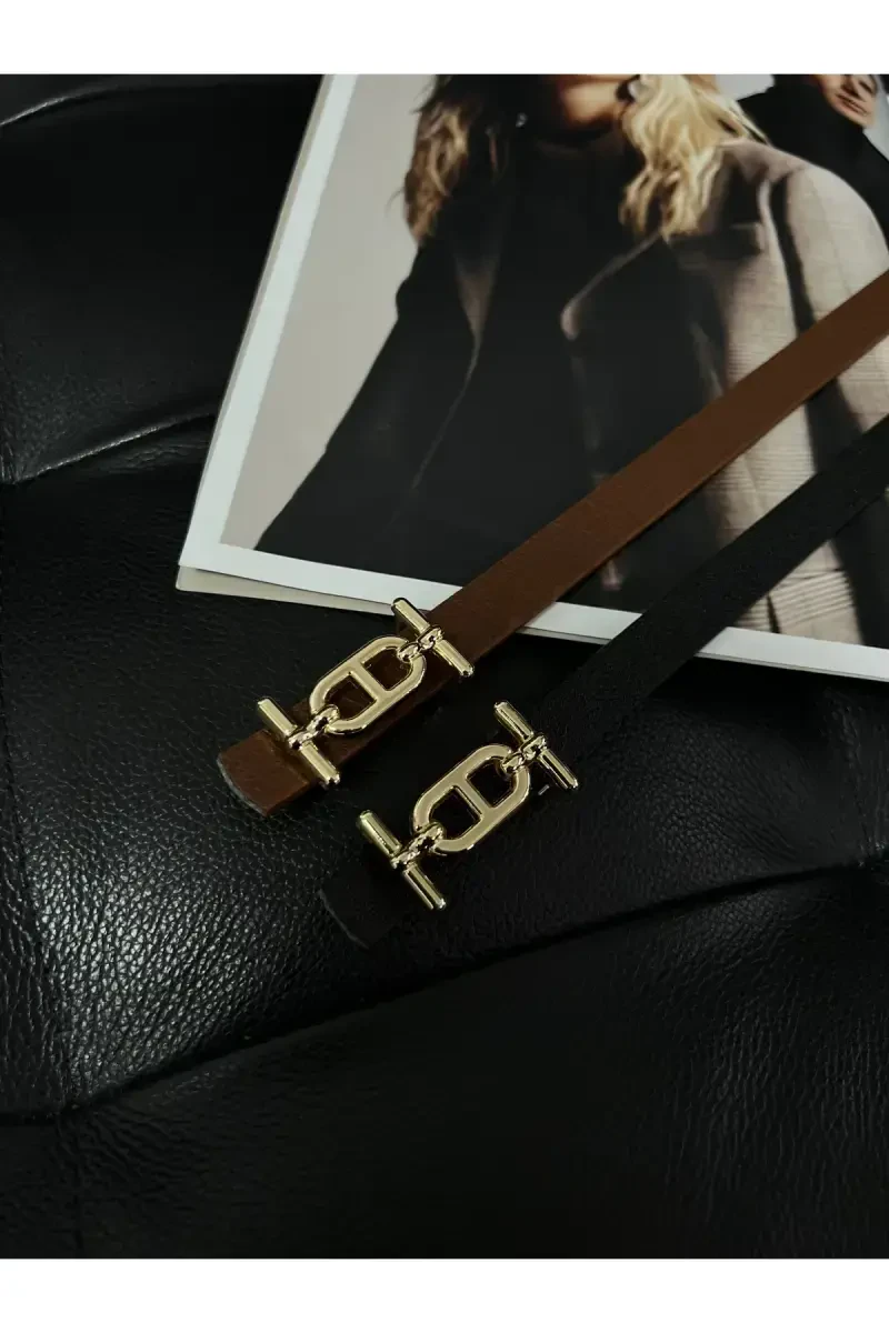Suni Deri Gold Tokalı İnce Kemer | 105 cm | Şık Kombinler