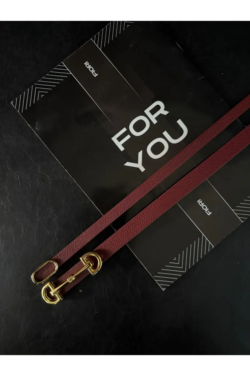 2’li Ithal Oval Gold Tokalı Ince Kemer, Pantolon Kemeri, Gömlek Kemeri, Ceket Kemeri-Bordo2li