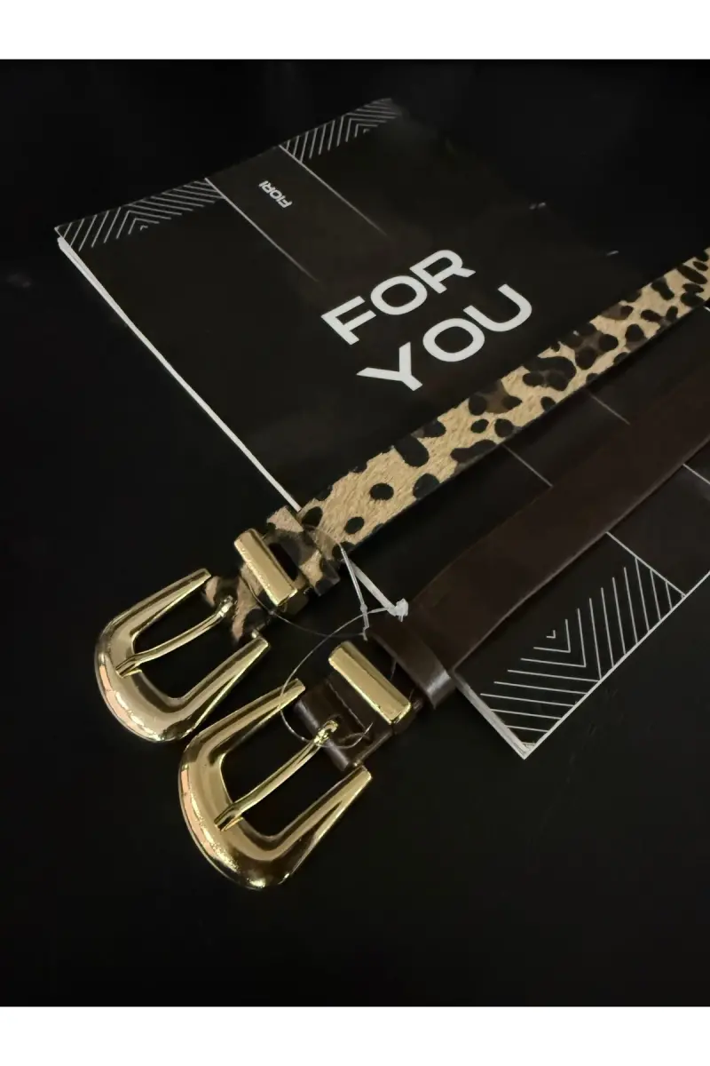 2'li Köprü Toka Uç Takım Kadın Pantolon Kemeri, Ceket Kemeri, Elbise Kemeri, Gömlek Kemeri-Kahve