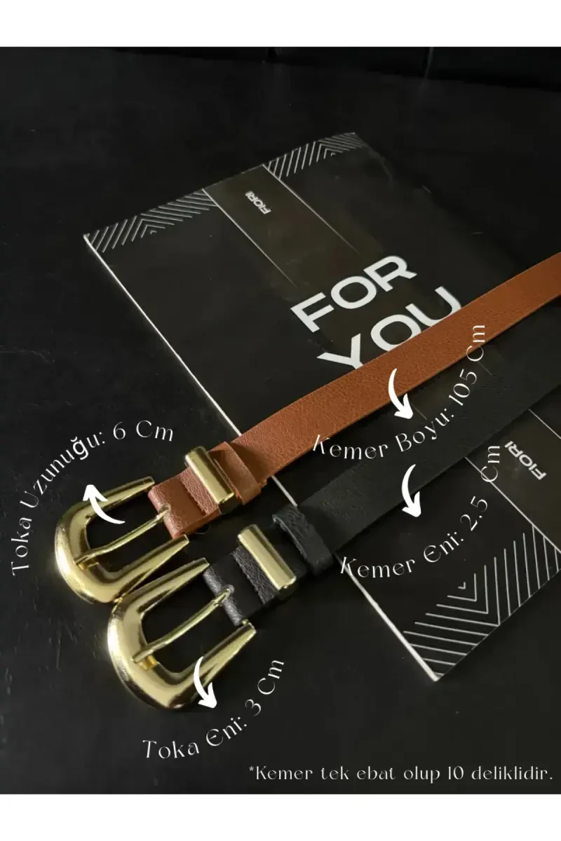 Gardırobunuzun vazgeçilmezi olacak 2'li Köprü Toka Uç Takım Kadın Pantolon Kemeri, şıklığı ve işlevselliği bir araya getiriyor. Siyahın asaletini yansıtan bu kemer, hem pantolonlarınızla hem de ceket, elbise ve gömleklerinizle mükemmel bir uyum sağlayarak stilinize sofistike bir dokunuş katacak. Yüksek kaliteli suni deri malzemeden üretilmiş olan bu kemer, uzun ömürlü kullanım sunarken, çevreye duyarlı bir seçenek de sunuyor. Kemerin toka ve uç kısımları, dayanıklı metalden üretilmiş ve nikel kaplama ile parlatılmıştır. Bu sayede, hem şık bir görünüm elde edilmiş hem de paslanmaya karşı direnç artırılmıştır. 2 cm genişliği ile ideal bir kalınlığa sahip olan kemer, kıyafetlerinizle orantılı bir görünüm yaratır ve rahat bir kullanım sunar. 105 cm uzunluğu ise, farklı bedenlere uyum sağlayacak şekilde tasarlanmıştır.Bu çok yönlü aksesuar, sadece pantolonlarınızı değil, aynı zamanda ceket, elbise ve gömleklerinizi de tamamlayarak, farklı kombinler oluşturmanıza olanak tanır. Bir ceketi belinizde toplayarak daha feminen bir siluet yaratabilir, bol bir elbiseye şekil vererek daha şık bir görünüm elde edebilir veya salaş bir gömleği vurgulayarak tarzınızı konuşturabilirsiniz. 2'li köprü toka detayı, kemere modern ve dikkat çekici bir hava katarken, nikel kaplama metal aksesuarlar ise zarafeti ön plana çıkarır. Bu kemer, günlük kullanımın yanı sıra özel günlerinizde de kıyafetlerinizi tamamlayacak şık bir detay olarak öne çıkacaktır. Kemerin siyah rengi, her türlü renk ve desene kolayca uyum sağlayarak, kombinlerinizi kolaylaştırır ve stilinize zamansız bir dokunuş katar. İster klasik bir tarzınız olsun, ister daha modern ve trendlere uygun bir tarzınız olsun, bu kemer gardırobunuzun vazgeçilmez bir parçası olacaktır. Şıklığı, kaliteyi ve çok yönlülüğü bir arada sunan bu kemer ile stilinizi her zaman bir adım öne taşıyın.