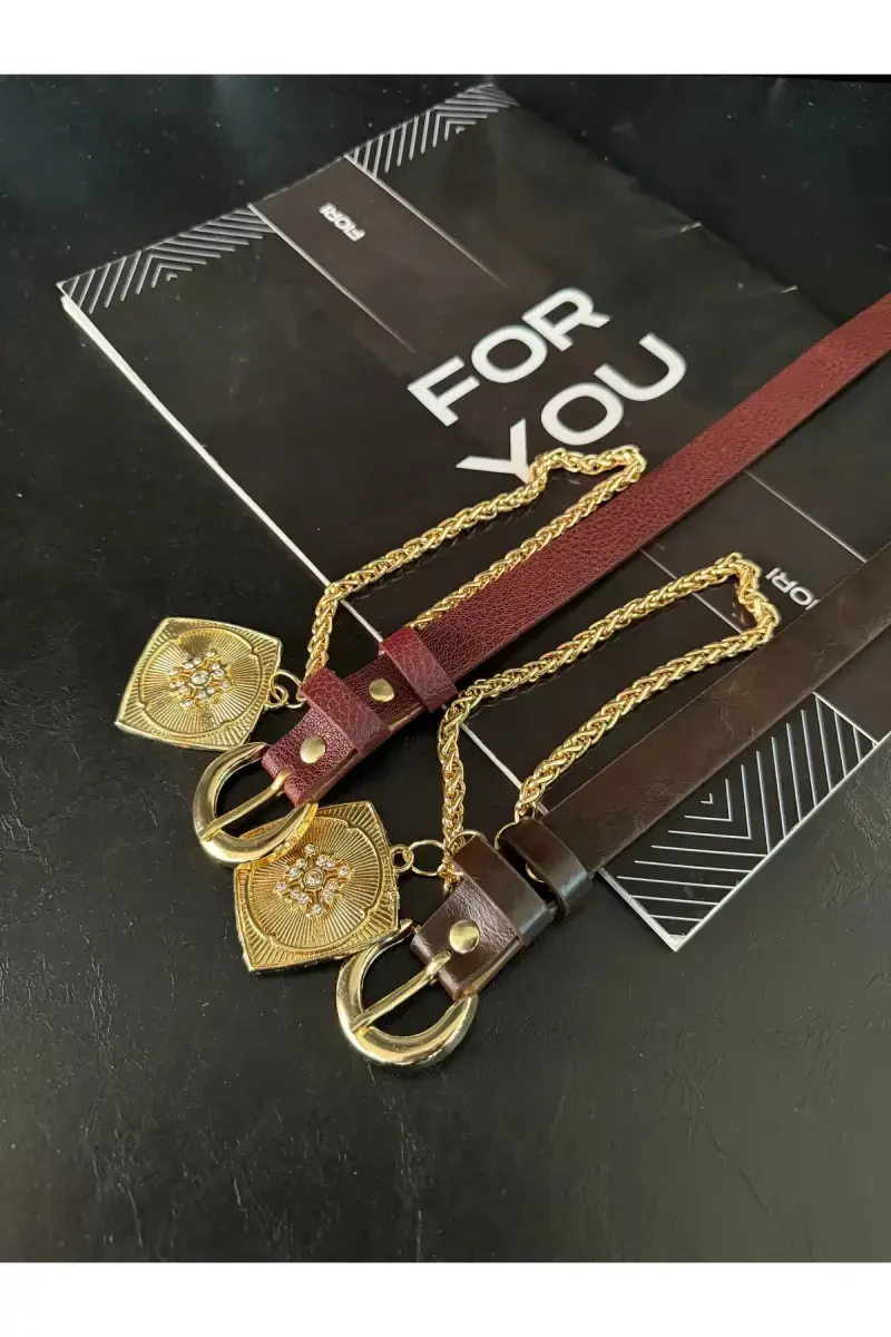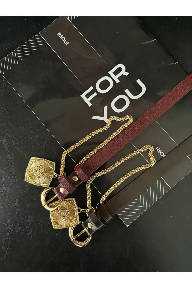 Bordo Qirollik Zanjirli Medalyonli Ayollar Kamari | Shim, Pidjak, Ko'ylak Kamari