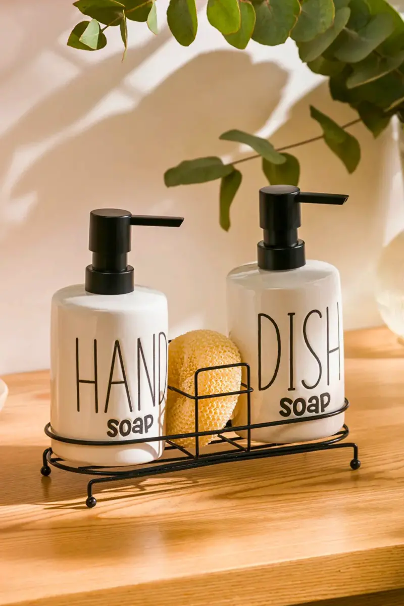 Знакомьтесь с набором для кухни и ванной Hand and Dish Fenomen Set 500 ML — двойной металлической подставкой и губкой для жидкого мыла, который поможет стильно и практично организовать вашу кухню и ванную комнату! Этот элегантный набор изготовлен из высококачественных материалов, отличается прочностью и долговечностью. Его современный дизайн подойдет к любому интерьеру, создавая стильный вид как на кухне, так и в ванной. Практичная губка упрощает мытье посуды или рук, а металлическая подставка обеспечивает порядок и чистоту мыльниц. Большой объем — 500 мл — устраняет необходимость часто менять мыло, экономя ваше время и силы. Этот товар, предлагаемый с гарантией Woodcept, является идеальным выбором для длительного использования. Воспользовавшись выгодной ценой по акции, вы сможете создать стильный и функциональный порядок на кухне и в ванной. Напоминаем, что при заказе более 10 единиц Trendyol оставляет за собой право на отмену заказа. Кроме того, вы можете совершать покупки без лишних забот благодаря 15-дневной бесплатной опции возврата. Не ждите, добавьте этот превосходный набор в корзину прямо сейчас и почувствуйте разницу в вашей ванной и на кухне!