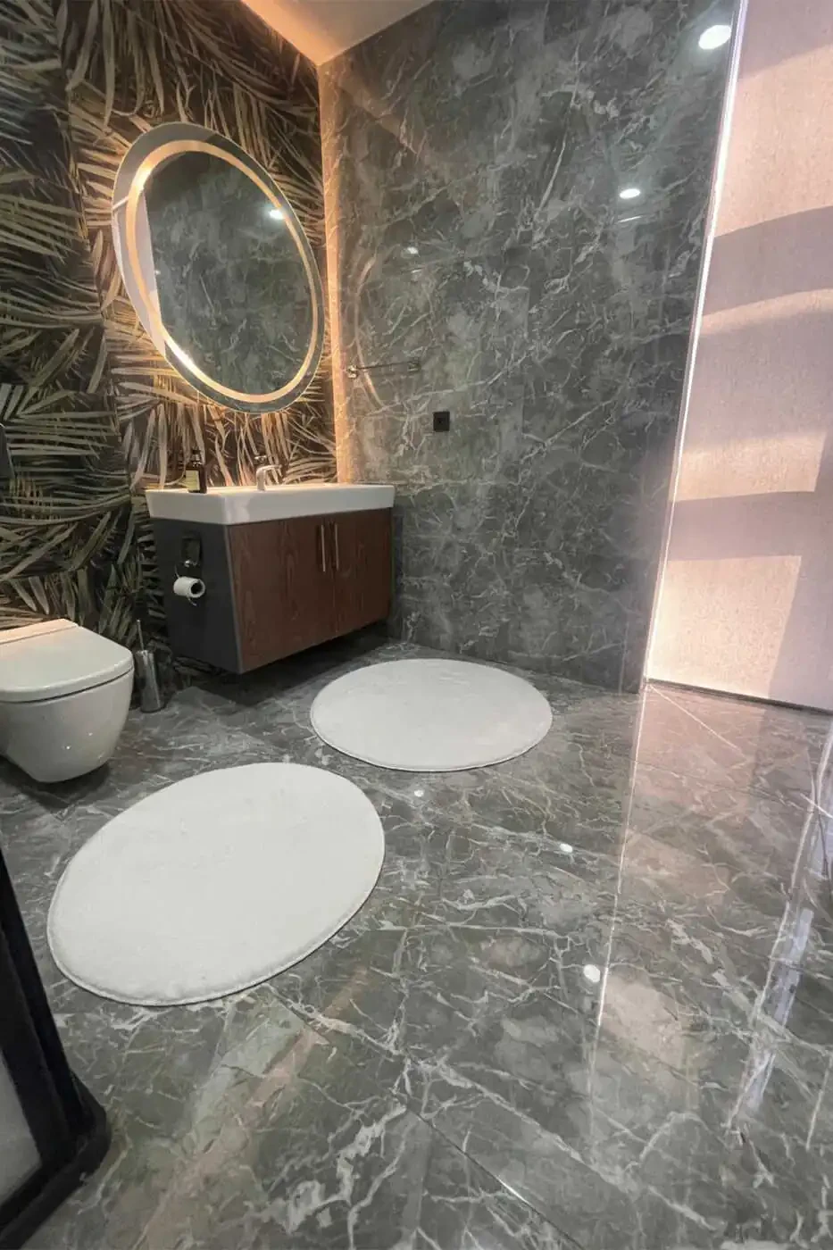 Meet the 2-Piece Round Bathroom Rug Toilet Set, combining style and comfort in your bathroom! This magnificent set, measuring 80x80 cm and 100x100 cm, will add a modern touch to your bathroom with its round design and soft texture. Offered to you with the Tropikal Home guarantee, this product is an investment you can use for many years thanks to its quality materials and workmanship. With its soft and absorbent structure, it quickly absorbs puddles, while its non-slip base maximizes your safety. It offers practical use thanks to its natural drying without the need for wringing. It is washable up to 30 degrees, making cleaning easy. With this 2-piece set, you can both elegantly decorate your bathroom and experience a comfortable and safe usage. Don't miss this opportunity offered at a limited-time campaign price! Add luxury and comfort to your life!