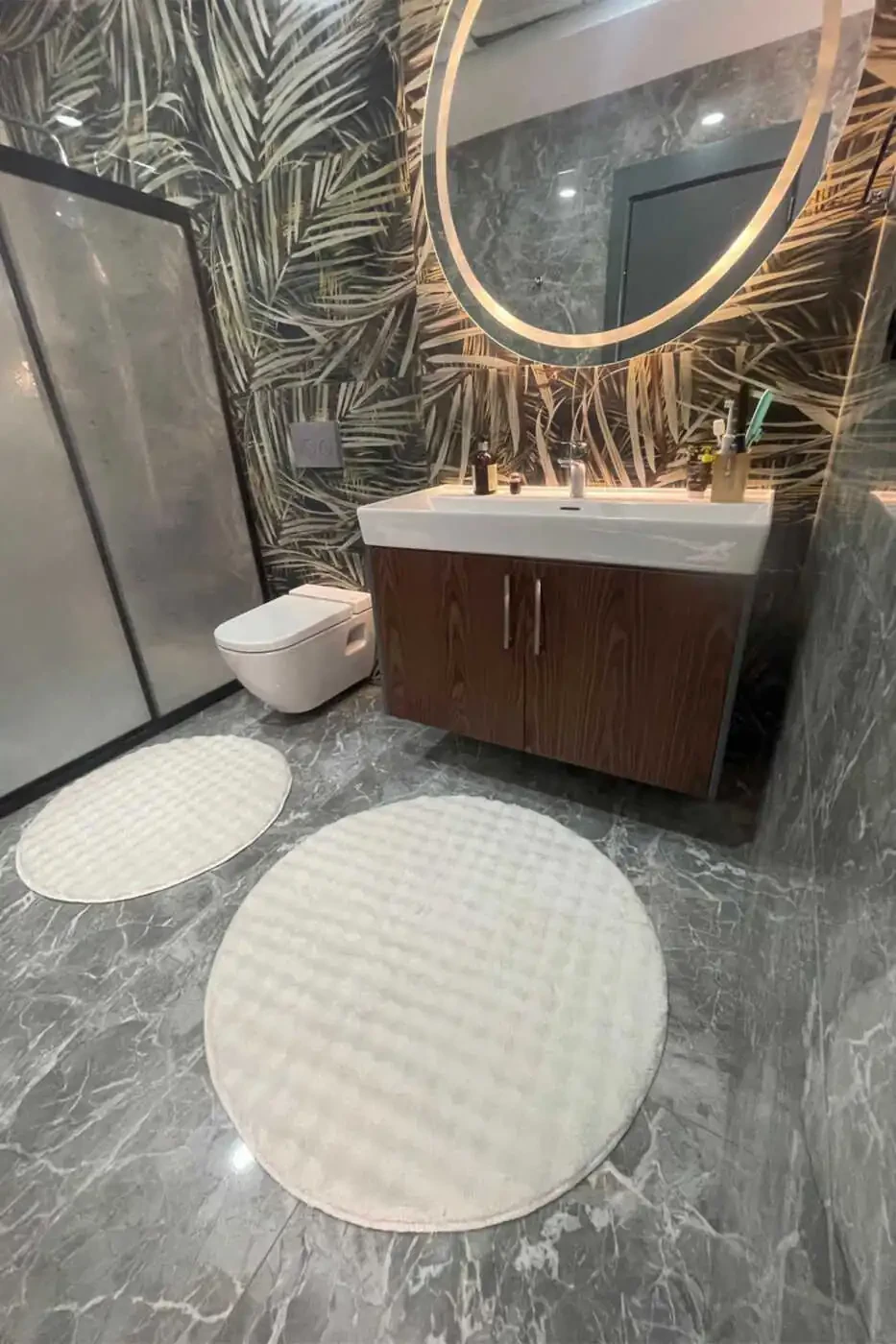 **Описание товара**Познакомьтесь с двухместным плюшевым комплектом для унитаза Buble, который сочетает в себе стиль и комфорт в вашем декоре дома! Этот великолепный набор, представленный с гарантией Tropikal Home, идеально подходит для различных типов унитазов благодаря вариантам размеров 80x80 см и 100x100 см. Плюшевая структура, изготовленная из высококачественного полиэстера, обеспечит вашим ногам мягкую поверхность, создавая незабываемый комфорт. Высота ворса более 12 мм сохраняет свою форму даже при длительном использовании, подтверждая свою долговечность. Благодаря легкости в уходе, создание гигиеничной среды станет очень практичным. Его можно легко стирать в машине при температуре 30 градусов, без необходимости отжима, отдавая предпочтение естественной сушке. Благодаря нескользящей основе он надежно и устойчиво держится на вашем унитазе, устраняя проблемы скольжения или смещения. Своим стильным дизайном и практичностью он добавит вашей ванной комнате как эстетичный вид, так и комфортные ощущения. Двухместный плюшевый комплект для унитаза Buble — идеальный выбор для тех, кто ищет как стиль, так и функциональность, призванный придать вашей ванной комнате роскошную атмосферу. Не упустите возможность приобрести его по выгодной цене, имея в наличии более 10 единиц!**Характеристики товара*** Практичное использование благодаря легко очищаемой структуре.* Возможность стирки до 30 градусов, сушка без отжима.* Высокая высота ворса (более 12 мм) обеспечивает комфортное использование и сохраняет форму в течение длительного времени.* Долговечный полиэстерный материал, устойчивый к деформациям.* Комплект из двух частей (размерами 80x80 см и 100x100 см).* Надежное использование благодаря нескользящей основе, обеспечивающей устойчивость на поверхности.* Подходит для унитазов разных размеров.* Стильный и современный дизайн.* Использование высококачественных материалов.* Отправка с гарантией Tropikal Home.* Возможность бесплатного возврата в течение 15 дней.* Продается по выгодной цене.* Наличие большого количества товара на складе.* Мягкая и плюшевая текстура обеспечивает комфортное использование.* Идеально подходит для гигиеничного и практичного использования.**Дополнительная информация**Можно заказать не более 10 единиц товара. Заказы свыше 10 единиц могут быть аннулированы Trendyol. Установленный лимит не распространяется на корпоративные заказы. Может продаваться несколькими продавцами. Продавцы ранжируются в зависимости от цены, рейтинга продавца, статуса доставки, акций, стоимости доставки и быстрой доставки. Для ознакомления с подробными условиями возврата посетите соответствующую ссылку. Продукт создаст разницу в вашей ванной комнате благодаря своему стильному внешнему виду и превосходному комфорту, сделав ваше ежедневное использование более приятным. Благодаря качественному материалу и исполнению вы сможете использовать его без проблем в течение многих лет. Выберите желаемый размер и насладитесь опытом использования комплекта для унитаза, идеально подходящего вашей ванной комнате.
