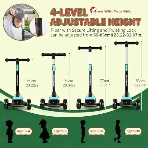 Besrey Kick Scooter for Kids Ages 3-10, 3-Wheel Folding Scooter with Adjustable Height, LED Light Wheels, Extra Wide Deck for Outdoor Activities