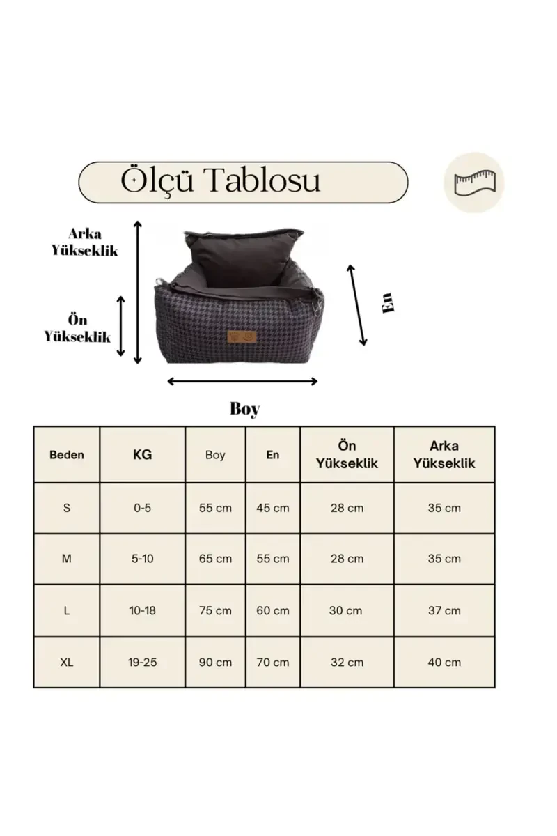 Ürün ölçüleri: Small: 55*45*28 arka yastık 35 cm. Medium: 65*55*28 arka yastık 35 cm. Large: 75*60*30 arka yastık 35 cm. XLarge: 90*70*32 arka yastık 35 cm. dir. PettyComfort güvencesiyle, patili dostlarınız için en iyi ürünleri sunmaya devam ediyoruz. Ürünümüz, uzun ömürlü ve dayanıklı yapısıyla size yıllarca hizmet edecektir. Köpeğinizin konforu ve güvenliği için PettyComfort'u tercih edin, rahat bir nefes alın.
