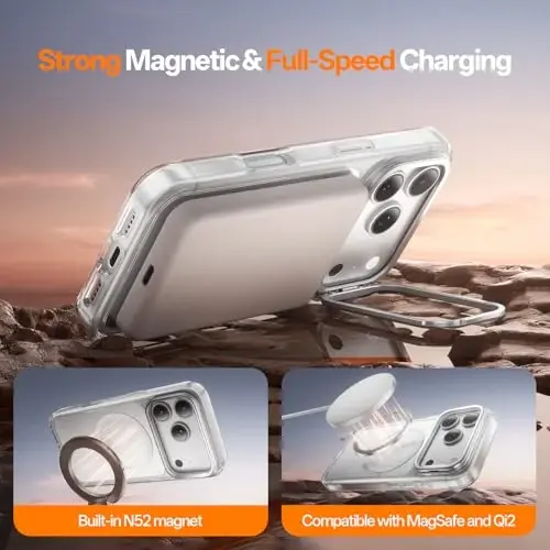 [Built-In Recessed Lens Stand for Easy Hands-Free Viewing ] Enjoy hands-free movies, calls, and tutorials with the built-in High-quality aluminum alloy lens stand that holds your iPhone 17 Pro at a stable angle. This funda para for iPhone 17 Pro adds comfort and convenience to your day without adding extra bulk 【Complete 360° Protection - 1 case & 1 Screen Protector & 1 Camera Lens Protector】More secure than a standard phone case for iPhone 17 Pro, this 3-in-1 set delivers full-body protection. It includes a durable case featuring Military-Grade Drop Protection, 4-corner airbag shockproof design, and a Scratch-Resistant Back Cover.In addition, it also has one 9H tempered glass iphone 17 pro screen protector and one iPhone 17 Pro Lens Protector, which can ensure that your device is protected from scratches, drops, and other daily dangers, providing peace of mind and comprehensive protection 【Not Yellowing & Crystal Clear】Designed exclusively for the iPhone 17 Pro Clear case, it features a high-definition, anti-yellowing back panel crafted from premium ultra-transparent material. The iPhone 17 Pro case with stand also comes with a nano anti-oxidation layer that effectively resists stains and sweat, delivering long-lasting anti-yellowing and fade-resistant performance—keeping your iPhone 17 Pro looking bright and glossy in daily life, business settings, and social gatherings [Stronger Magnetism & Fast Charging] This for iPhone 17 Pro case with screen protector provides strong magnetic attacModazoneent for all MagSafe accessories and supports fast, stable Q2 wireless charging. The upgraded N52 magnets ensure secure alignment during charging, helping your device maintain efficient power delivery whether you're at home, in the car, or on the go [ONLY for iPhone 17 Pro with Reliable Support] This forro para designed specifically for the iPhone 17 Pro, this case delivers an accurate fit and a smooth user experience. Please check your phone model before purchasing, if you have any problem, please contact us viaModazoneContact Center, we will give you a satisfactory answer
