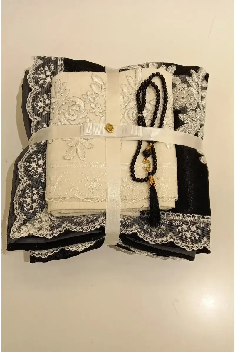 3 Parça Siyah Hediyelik Çeyizlik Seccade Bohça Seti, geleneksel motifleri modern tasarımla bir araya getirerek, hem görsel bir şölen sunar hem de kullanım kolaylığı sağlar. Set içeriğinde bulunan seccade, yüksek kaliteli kumaşı sayesinde uzun ömürlü kullanım imkanı sunarken, namaz esnasında rahatlık ve konforu ön planda tutar. Seccadenin özel dokusu, kaymaz özelliği sayesinde güvenli bir ibadet deneyimi sunar. Bohça, seccadenizi ve diğer özel eşyalarınızı muhafaza etmek için ideal bir çözümdür. Şık tasarımı ve dayanıklı yapısıyla bohça, hem işlevsel hem de dekoratif bir öğe olarak kullanılabilir. Setteki diğer parça ise, genellikle tesbih veya özel bir not kartı gibi sürpriz bir öğe içerebilir. Bu sürpriz, sete ayrı bir değer katarken, hediye ettiğiniz kişiye özel bir anlam ifade etmesini sağlar. Siyahın asaletini ve şıklığını yansıtan bu set, her zevke hitap eden zamansız bir tasarıma sahiptir. Özellikle çeyiz hazırlığında olanlar için kaçırılmaması gereken bir fırsattır. Ürünümüz, özenle seçilmiş malzemelerden üretilmiş olup, uzun yıllar boyunca ilk günkü gibi kalitesini korur. İster kendiniz için, ister sevdikleriniz için olsun, bu set, manevi değerinizi ve zevkinizi yansıtacak özel bir seçim olacaktır. Evinizin en özel köşesinde sergileyebileceğiniz veya sevdiklerinize gönül rahatlığıyla hediye edebileceğiniz bu set, her zaman hatırlanacak anlamlı bir armağan olacaktır. Üstelik, setin tamamı, şık bir hediye kutusunda gönderilerek, sunumunuza da ayrı bir özen katmaktadır. Bu sayede, hediye etme süreciniz de keyifli ve unutulmaz bir deneyime dönüşecektir. Siyahın derinliği ve asaleti, bu set aracılığıyla yaşam alanlarınıza yansıyacak ve manevi atmosferinizi zenginleştirecektir.