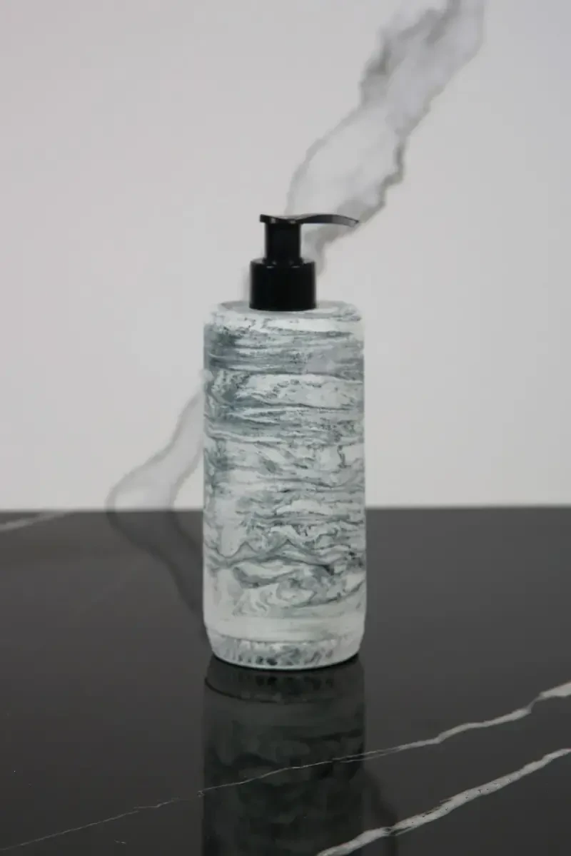 Marble Patterned Concrete Bathroom Set | Liquid Soap Dispenser, Toothbrush Holder, Tray | Green Bathroom Accessory