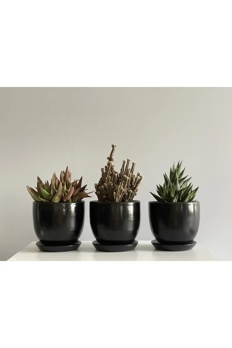 The 3-piece Mini Pot Set, carefully prepared by Odkadekor, is designed to add a natural and stylish touch to your living spaces. This set enriches the atmosphere of your home or office by bringing together modern and authentic style. Each pot is made of terracotta and provides an ideal environment for your plants to grow healthily. The product includes 3 pots and 3 saucers, so you don't have to go to extra effort when placing your plants. Suitable for indoor and outdoor use, these pots can be easily used in any area from your balcony to your living room, from your office to your garden. Considering those with allergies and odor sensitivities, the inner and outer surfaces of the pots are painted and varnished with odorless paint that does not contain chemical toxins and does not harm human health. In this way, you can safely and enjoyably grow your plants. Thanks to the drainage holes at the bottom of the pots, it allows excess water to be drained when you water your plants, preventing water accumulation and root rot. This feature helps your plants grow healthily and also prevents bacteria from growing in the pot. Since it is handmade, each pot has its own unique character. Rarely, +/-1cm differences can be seen in the dimensions, which increases the uniqueness of the product and the value of the hand workmanship. It is also very practical in terms of cleaning. There is no need to use detergent and wet wipes; You can easily clean it by simply washing it with water or wiping it with a damp cloth. In this way, you can ensure that your pots look as new and vibrant as the first day. Odka Pots adapt to every decoration style with their different color and pattern options. Whether you have a minimalist, bohemian or classic style, you can add a unique touch to your living space with these pots. Remember, this set does not include plants; so you can choose the plant you want and reflect your personal style. Your plants are now more stylish and healthy with the 3-piece Mini Pot Set!