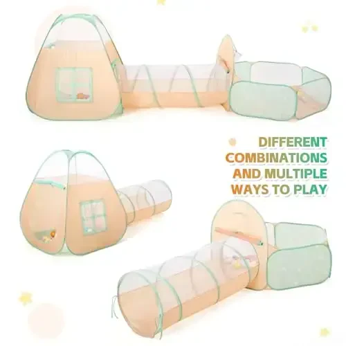 3 in 1 Pop Up Kids Play Tent - bu kichik sarguzashtchilar uchun mo'ljallangan, qiziqarli o'yin maydonidir. Ushbu to'plam o'yin chodiri, tunnel va to'p havzasini birlashtirib, bolalarning tasavvurini rivojlantirishga va jismoniy faoliyatini qo'llab-quvvatlashga imkon beradi. 1, 2 va 3 yoshli o'g'il va qiz bolalar uchun ajoyib tug'ilgan kun sovg'asi bo'lgan ushbu o'yin to'plami ham ichki, ham tashqi makonda foydalanish uchun javob beradi. Bolalar ushbu rangli va interaktiv o'yin maydonida soatlab zavqlanishlari, do'stlari bilan birga maroqli vaqt o'tkazishlari mumkin. To'rli derazalar tufayli shamollatish ta'minlanadi, ota-onalar esa bolalarini osongina kuzatib turishlari mumkin. Kvadrat chodir va uzun tunneldagi kichik teshiklar o'yin imkoniyatlarini oshiradi va bolalarning qiziqishini rag'batlantiradi. Ushbu to'plam nafaqat bolalar uchun, balki kichik itlar va yoqimli mushuklar uchun ham ajoyib o'yin maydonini taqdim etadi. Uni uyda, parkda yoki piknikda ishlating, ushbu o'yin to'plami bolalar va uy hayvonlaringizni xursand qiladi. Bardoshli materiallardan tayyorlangan, uni osongina tozalash va uzoq muddat foydalanish mumkin. Yig'iladigan xususiyati tufayli uni tashish va saqlash juda qulaydir. Bolalaringizning xavfsizligi birinchi o'ringa qo'yilgan ushbu o'yin to'plami ularga unutilmas o'yin tajribasini taqdim etadi. Ularning tasavvur olamini boyitadi, ijtimoiy munosabatlariga hissa qo'shadi va jismoniy rivojlanishini qo'llab-quvvatlaydi. Ushbu 3'ü 1 arada o'yin to'plami bilan bolalaringizga ham qiziqarli, ham ta'limiy sovg'a bergan bo'lasiz. Ularning baxti siz uchun eng qimmatli narsa bo'lsa, bu o'yin to'plami aynan siz uchun!