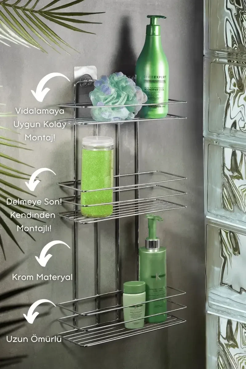Banyonuzu düzenlemenin ve şıklık katmanın en pratik yolu olan 3 Katlı Krom Yapışkanlı Banyo Rafı ile tanışın! Bu şık ve fonksiyonel duş düzenleyici, banyo duvarınıza kolayca monte edilerek size geniş bir depolama alanı sunar. SASGLOBAL güvencesiyle sunulan bu ürün, kampanya fiyatıyla şimdi daha da cazip. Ürün, birden fazla satıcı tarafından satışa sunulabilmektedir, bu nedenle fiyatlar, satıcı puanları, teslimat koşulları ve promosyonlar gibi faktörlere göre değişiklik gösterebilir. Trendyol'da bu üründen en fazla 15 adet sipariş verebilirsiniz. 3 Katlı Krom Yapışkanlı Banyo Rafı, delme gerektirmeyen pratik montajı sayesinde banyonuzda herhangi bir hasar oluşturmaz. Güçlü yapışkan bantları sayesinde kolayca duvara sabitlenir ve size zaman kazandırır. Dilerseniz, ürün üzerindeki hazır delikler sayesinde vidalayarak da monte edebilirsiniz. Bu alternatif montaj seçeneği, ürünün daha da sağlam ve güvenli bir şekilde duvara tutunmasını sağlar. Paslanmaya dayanıklı krom kaplama metal gövdesi, nemli banyo ortamında uzun süreli kullanım imkanı sunar. Şık ve modern krom tasarımı, banyonuzun dekorasyonuna kolayca uyum sağlar ve banyonuza ferah bir görünüm kazandırır. Üç katlı geniş iç hacmi, şampuan, duş jeli, sabun, losyon ve diğer banyo aksesuarlarınız için ideal bir depolama alanı sunar. Dağınık banyo tezgahlarına ve karmaşık duş köşelerine son verin! Dayanıklı yapısı sayesinde uzun ömürlü kullanım sunar. Banyo rafının yüzeyi kolayca temizlenebilir, bu sayede hijyenik bir kullanım imkanı sunar. Şık tasarımı ve pratik özellikleriyle 3 Katlı Krom Yapışkanlı Banyo Rafı, banyonuzun vazgeçilmezi olacak. Hem kullanışlı hem de estetik bir çözüm arayanlar için ideal bir seçimdir. Banyonuzu düzenli tutmanın ve banyo deneyiminizi iyileştirmenin keyfini çıkarın. 15 gün içinde ücretsiz iade imkanı ile risksiz bir alışveriş deneyimi yaşayabilirsiniz. Banyonuzdaki eşyaları düzenli bir şekilde saklamak ve onlara kolayca ulaşmak için bu harika ürünü kaçırmayın. Şampuanlarınız, kremleriniz ve diğer kişisel bakım ürünleriniz artık elinizin altında olacak. Banyonuzda daha fazla alan yaratmak ve banyonuzu daha işlevsel hale getirmek için 3 Katlı Krom Yapışkanlı Banyo Rafı tam size göre. Bu ürünle banyonuzda hem düzeni sağlayacak hem de estetik bir görünüm elde edeceksiniz. Banyonuzda şıklığı ve düzeni bir araya getirin!