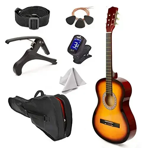 30" Левосторонняя деревянная гитара с чехлом и аксессуарами для детей/девочек/мальчиков/подростков/начинающих (Sun)