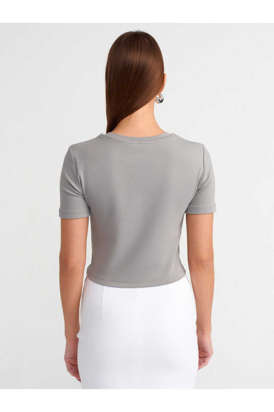 Combining style and comfort, the 30124 Crop T-shirt will be an indispensable part of your wardrobe. This t-shirt, which adapts to every style with its gray color, is an ideal choice to complete your daily combinations. Its soft and breathable fabric provides comfort all day long. The crop model adds a modern touch to your style.