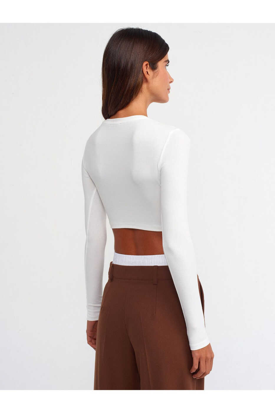 30349 Топ с воротником поло и длинным рукавом - Экру | Стильный и комфортный