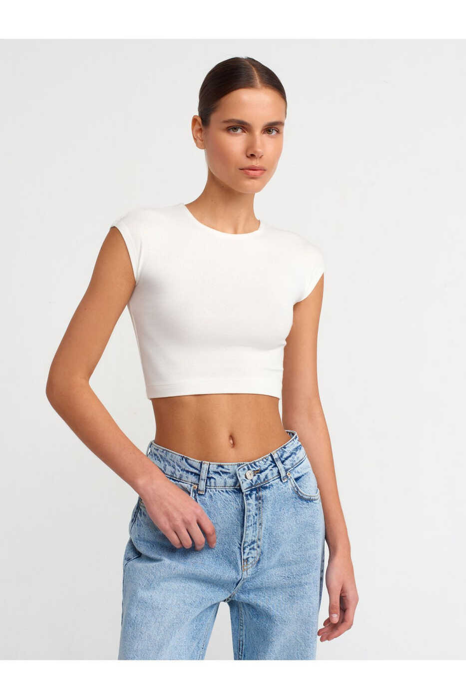 The ecru color of the 30528 Crop Top makes it suitable for any style. You can easily wear it for everyday use, sports activities or special occasions. It creates a stylish and modern look with jeans, skirts or shorts.