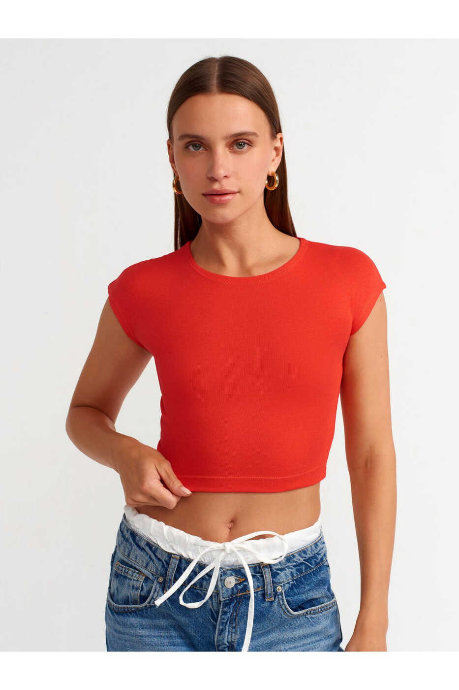 Siz ham 30528 Paxta Va Modal Aralashgan Crop Top bilan uslubingizga qulaylik va zamonaviylik qo'shing!