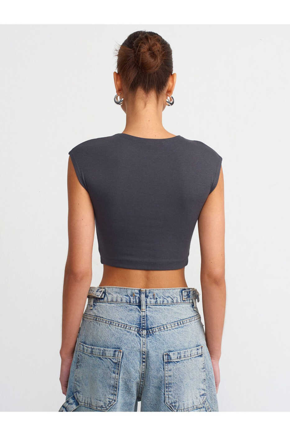 30528 Paxta va Modal aralashmasi Crop Top - Antrasit