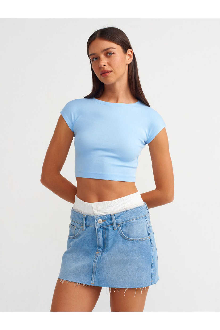 30528 Paxta va Modal Aralashgan Crop Top - Ochqor Rang