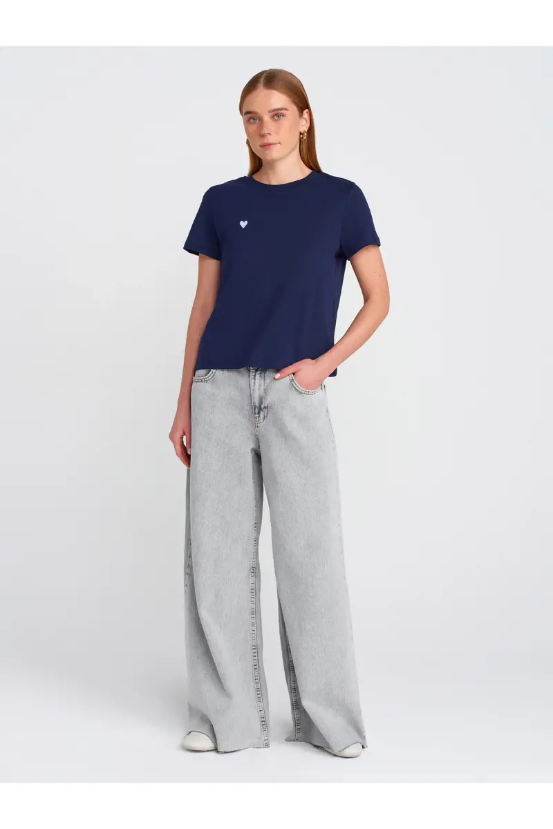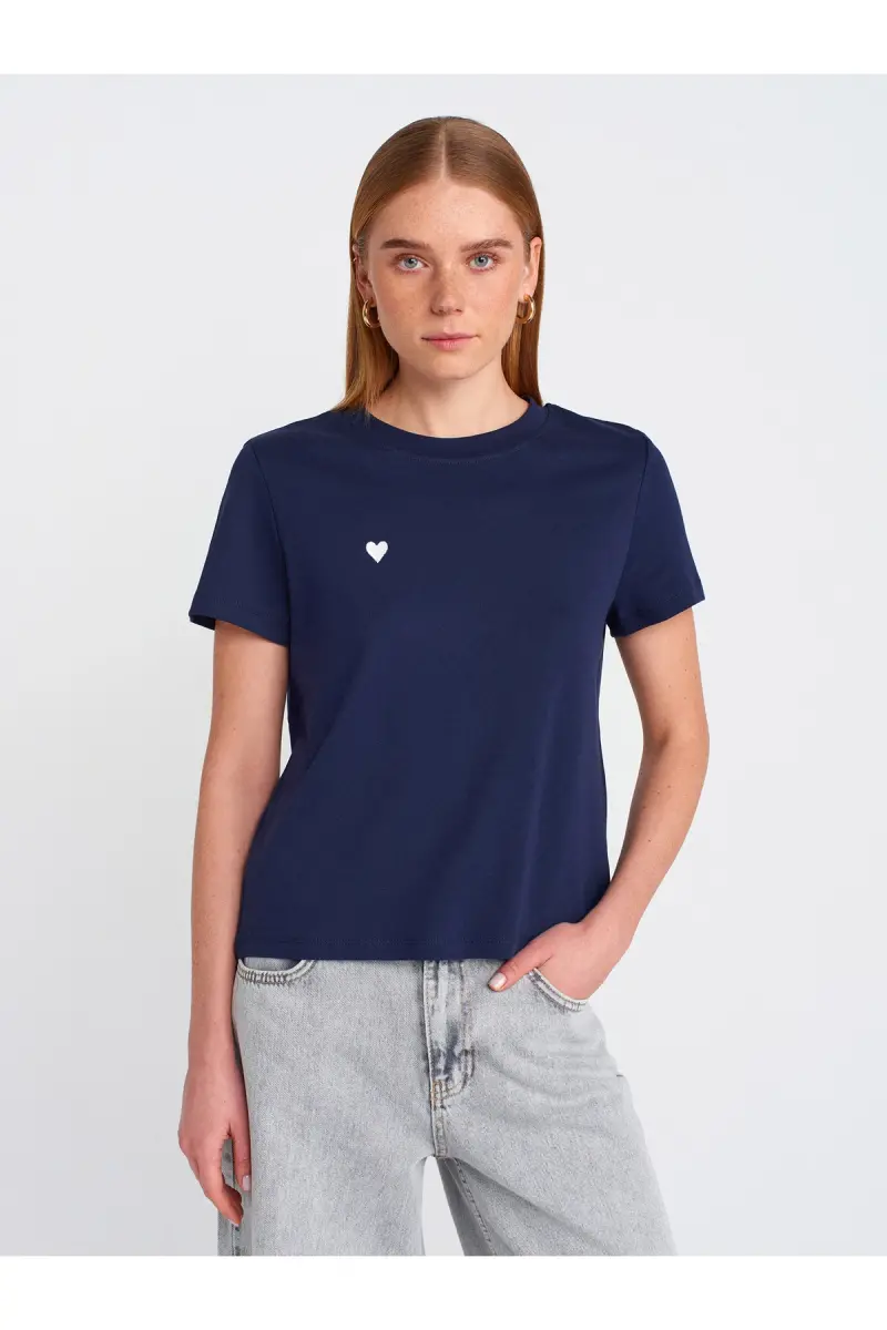 30584 %100 Pamuk Bisiklet Yaka Pamuklu T-shirt-Lacivert-Lacivert