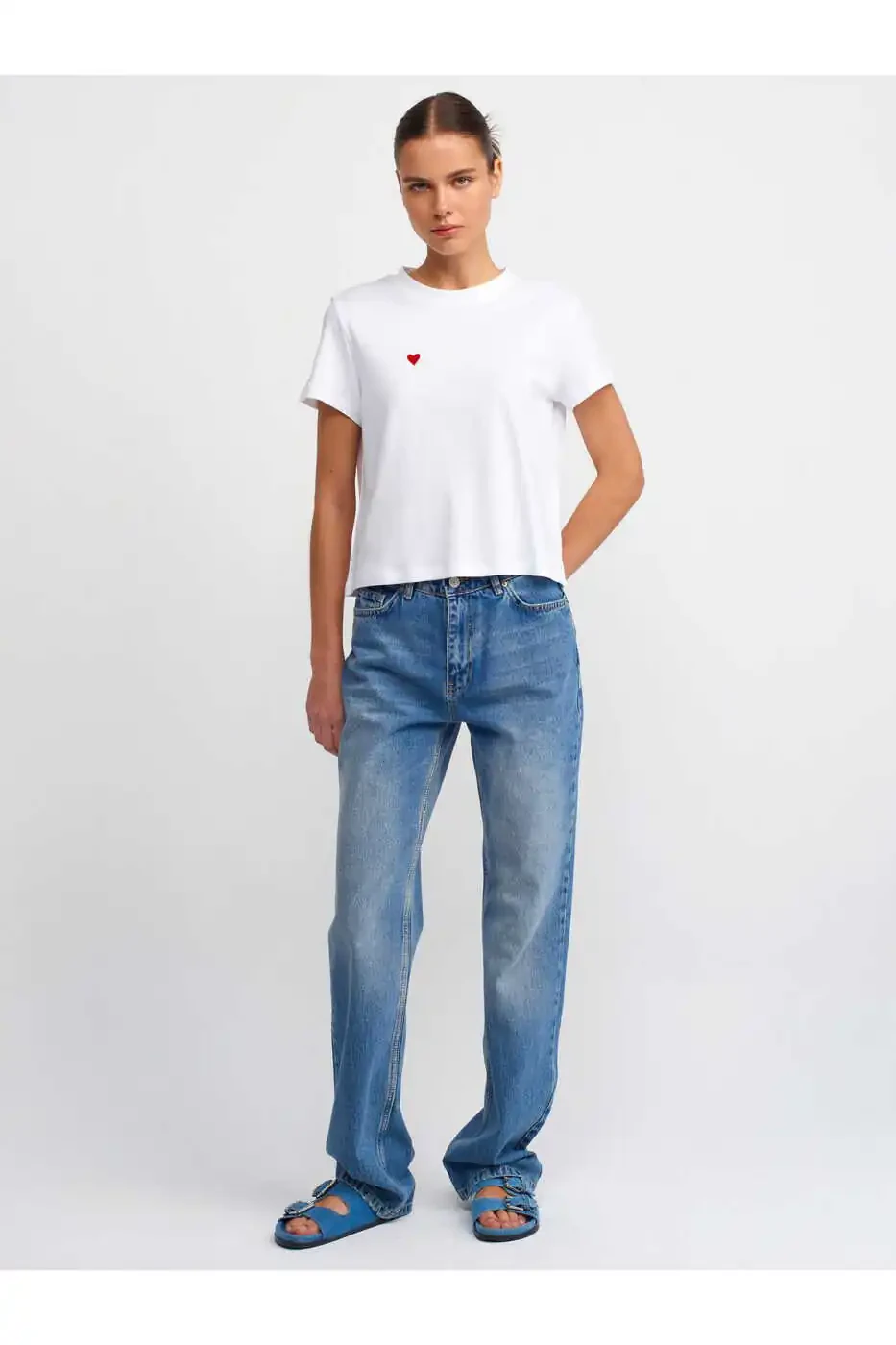 Bisiklet yaka tasarımı, modern bir görünüm kazandırırken, beyaz rengi her kıyafete uyum sağlayarak gardırobunuzun olmazsa olmazlarından biri haline geliyor. Her gün giymek veya özel günler için şık bir görünüm yaratmak için ideal bir seçim.